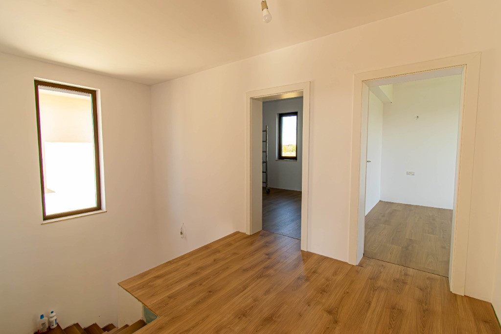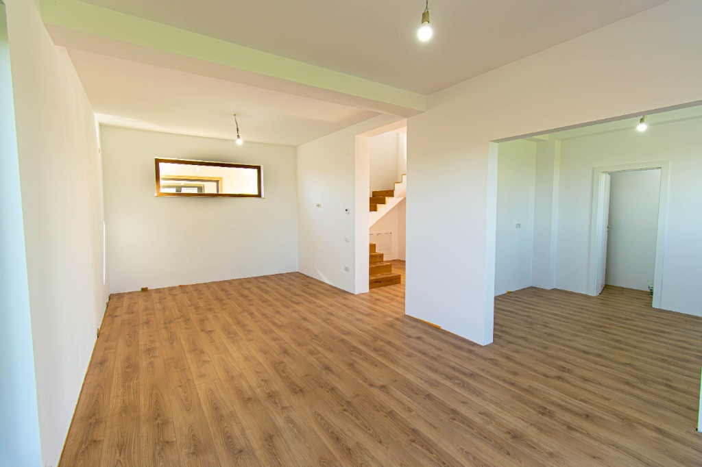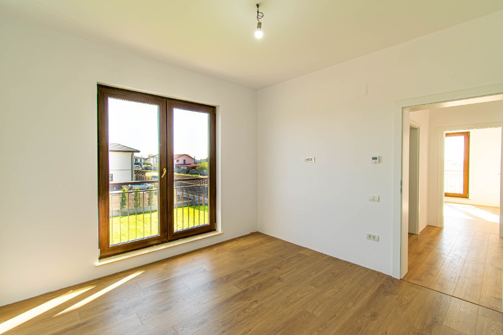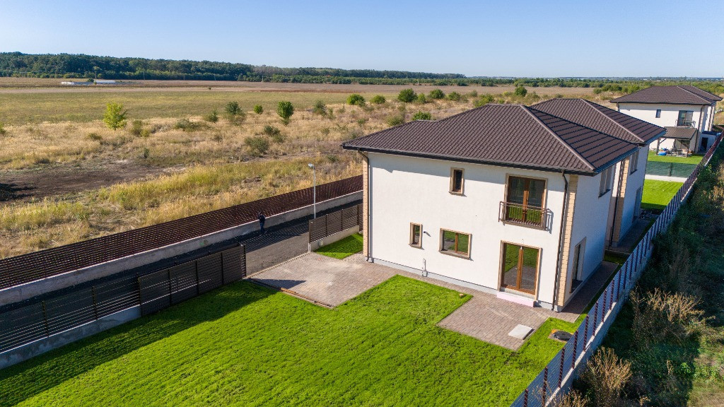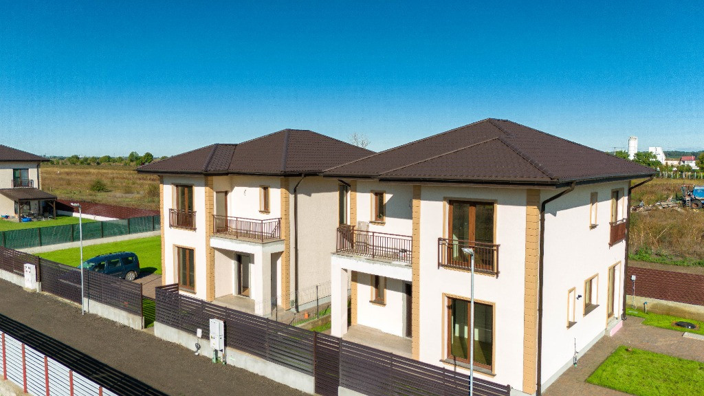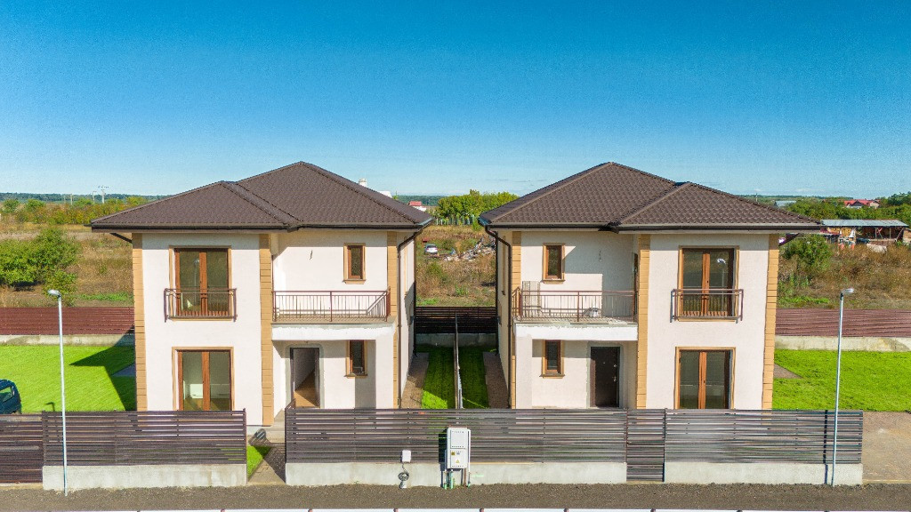 Proiect , compus din cinci locuinte avand aceeasi arhitectura, cu mici accente de culoare si placari de piatra.Mai este disponibila o singura unitate cu finalizare 1.04.2025. In interiorul complexului zonele de parcare ale proprietatilor vor fi deschise, se vor crea alveole de parcare pentru oaspeti, iar fiecare proprietate va avea un stalp de iluminat si se vor planta tei pe zonele destinate pentru oaspeti. Casele se vor preda complet finalizate, cu finisaje alese de designer, curtile amenajate cu sistem de irigare automatizat, gazon , zona de parcare si terase. Suprafata construita este de 172mp, teren 530mp Toate utilitatile vor fi functionale functionale si individuale pentru fiecare unitate in parte. Compartimentare interioara: -parter: living-dinning 26mp, bucatarie semiinchisa/inchisa 10.15p, cu camera tehnica de 3.5mp, birou 8.65mp, baie cu cabina de dus 4.8mp, depozitare sub scara si o terasa care poate fi acoperita la cerere in suprafata de 14mp -etaj: dormitor matrimonial cu dressing si baie in suprafata de 22mp, doua dormitoare de 12.5p si o baie cu cada Finisajele Interioare 1. Living si dinning • Pardoseala va fi din parchet laminat de 10mm, Egger, clasa 33, folie speciala pentru incalzirea in pardoseala, plinta in culoare/alba. • Peretii tencuiti si zugraviti cu vopsea lavabila alba. • Tavanul din dala beton de 18cm si izolat cu rigips pe structura metalica gletuit si zugravit cu vopsea lavabila alba. • Cablare tv/internet 2. Bucatarie • Pardoseala va fi din parchet laminat de 10mm, Egger,clasa 33, folie speciala pentru incalzirea in pardoseala,, plinta in culoare/alba. • Tavanul izolat cu rigips pe structura metalica, gletuit si zugravit cu vopsea lavabila alba. • Alte dotari prevazute: priza si scurgere pentru masina de spalat vase, racorduri pentru chiuveta, aragaz/hota, cuptor, frigider/congelator. 3. Camera tehnica • Pardoseala din placi ceramice. • Peretii zugraviti cu vopsea lavabila alba. • Tavanul izolat cu rigips pe structura metalica, gletuit si zugravit cu vopsea lavabila alba. • Prize si scurgeri pentru masina de spalat rufe si uscator rufe. 4. Bai • Pardoseala din gresie. • Peretii placati cu faianta 2 pereti si jumatate la inaltimea de 2ml. • Tavanul izolat cu rigips rezistent la umezeala pe structura metalica gletuit si zugravit cu vopsea lavabila alba. • Baia de la parter si cea matrimoniala vor fi cu cabina de dus , iar cea de pe hol cu cada si baterie freestanding, mobilier, oglinzi, Wc-uri suspendate • Prize pentru uscator de par, aparat de ras 5. Scara interioara • Scara va fi placata cu un parchet special din LVT, clasa trafic 46, productie Suedia 6. Dormitoare • Pardoseala va fi din parchet laminat de 10mm, Egger, clasa 33, folie speciala pentru incalzirea in pardoseala,, plinta in culoare/alba. • Peretii tencuiti,gletuiti si zugraviti cu vopsea lavabila alba. • Tavanul izolat cu rigips pe structura metalica, gletuit si zugravit cu vopsea lavabila alba. 7. Cablare TV/internet in toate camerele 8. Terasa si intrarea in casa • Terasa laterala de 14 m2, neacoperita, din pavaj . • Intrarea in casa va fi placata cu travertin/gresie de exterior. 9. Usi • Porta Doors sau similar de culoare alba . Construcția • Este executata pe fundatii continue din beton armat, structura cu stâlpi, grinzi si planseu armat peste parter de 18 cm grosime. • Zidaria nu este portanta si va fi executata din caramida de 30cm grosime porotherm. • Casa va fi este acoperita din tabla tip tigla metalica BILKA model Balcanic Grande Mat Ral 8019 Maro Inchis 0.50mm sau model Romanic Mat Ral 7024 Gri Grafit 0.50mm, sub tabla folie anticondens si izolatie din strat de vata minerala de 20cm. • Toate compartimentarile interioare vor din caramida, peretii tencuiti, gletuiti, sapele elicopterizate. Straturi finisare pereți: tencuiala cu liant Mulltibat, glet de încărcare Gletul meseriasului, glet de finisaj CT 127, vopsea lavabila. Finisajele Exterioare • Fatada executata cu tencuiala decorativa Ceresit de culoare alba si bej, caramiziu conform proiect, mici accente din piatra. • Izolatia la exterior va fi realizata cu polistiren grafitat EPS80 de 10cm • Scara de la intrare finisata cu placari din granit sau travertin. • Tamplaria (geamuri si usi de balcon) este din PVC marca Veka Softline 82mm, geam tripan cu protectie solara, low-e exterior si gaz (argon) in interiorul tripanului, structura este: 4mmlow-e-14mmArgon-6mmFloat clar-14mmArgon-6mmPlanitherm 4S Evolution, deschidere osciloculisanta pe bucatarie. • Glafurile interioare executate din marmura. • Glafurile la exterior din table • Usa de la intrarea principala metalica, produsa de MegaDoors Instalatia de incalzire interioara • Instalatia de incalzire interioara a locuintei realizata din PEX+PPR. Marca TECE. • Casa cu incalzire in pardoseala pe intreaga suprafata, cu cu un termostat wifi de reglare a temperaturii si preechipare pentru senzori de reglare a temperaturii in fiecare camera. • Coloanele realizate din PEX+PPR.