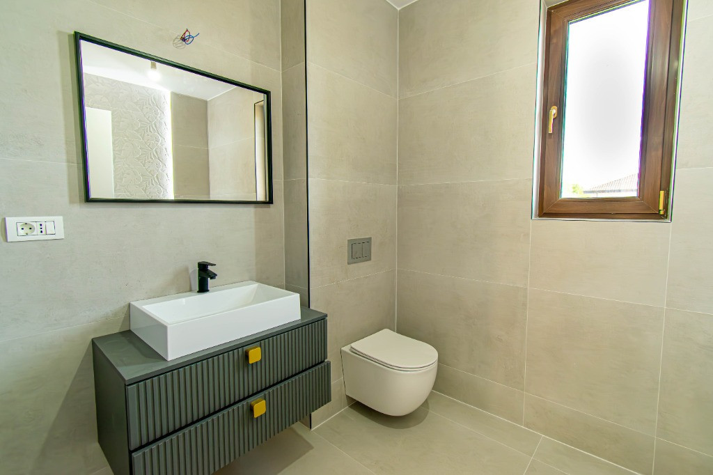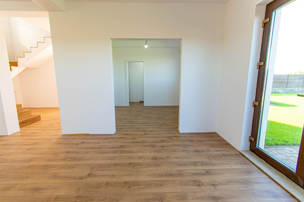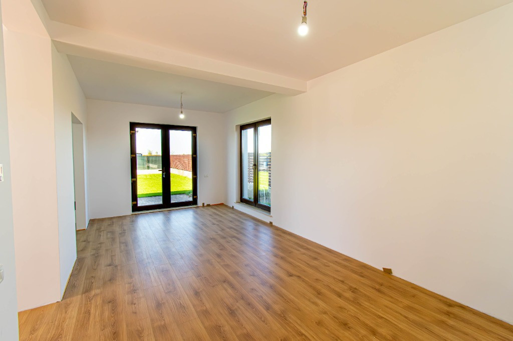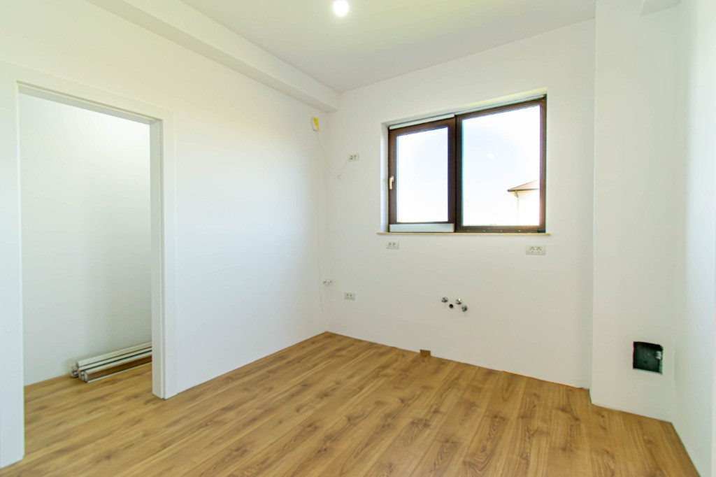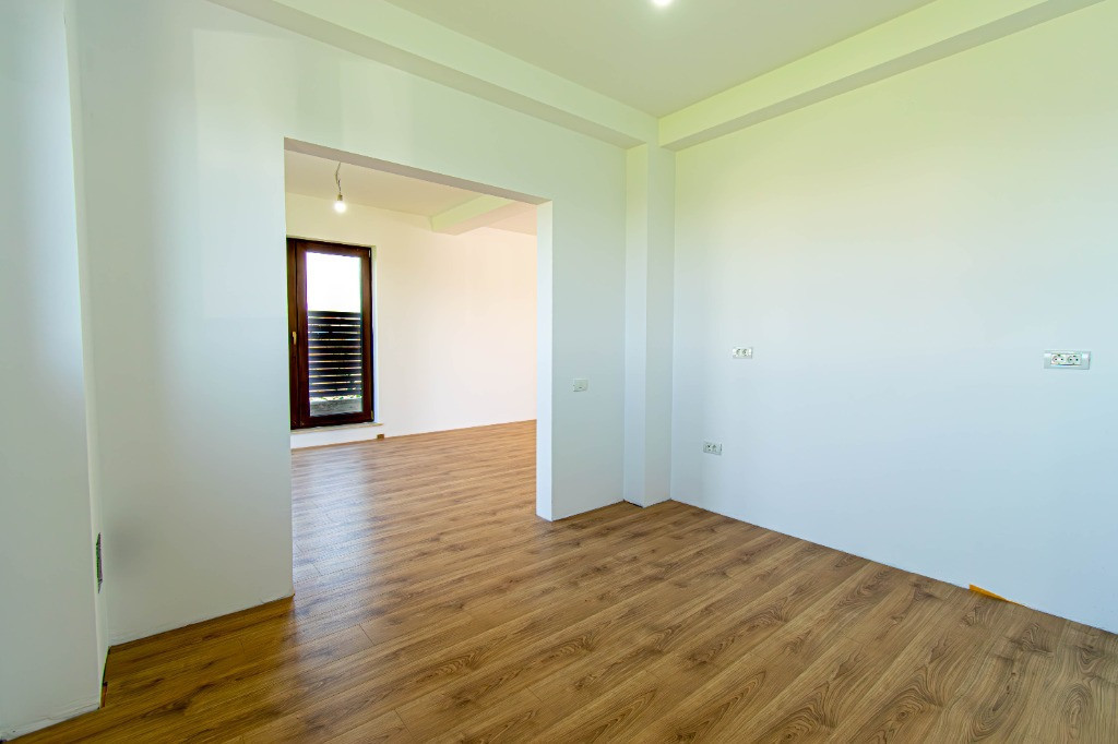 Proiect , compus din cinci locuinte avand aceeasi arhitectura, cu mici accente de culoare si placari de piatra.Mai este disponibila o singura unitate cu finalizare 1.04.2025. In interiorul complexului zonele de parcare ale proprietatilor vor fi deschise, se vor crea alveole de parcare pentru oaspeti, iar fiecare proprietate va avea un stalp de iluminat si se vor planta tei pe zonele destinate pentru oaspeti. Casele se vor preda complet finalizate, cu finisaje alese de designer, curtile amenajate cu sistem de irigare automatizat, gazon , zona de parcare si terase. Suprafata construita este de 172mp, teren 530mp Toate utilitatile vor fi functionale functionale si individuale pentru fiecare unitate in parte. Compartimentare interioara: -parter: living-dinning 26mp, bucatarie semiinchisa/inchisa 10.15p, cu camera tehnica de 3.5mp, birou 8.65mp, baie cu cabina de dus 4.8mp, depozitare sub scara si o terasa care poate fi acoperita la cerere in suprafata de 14mp -etaj: dormitor matrimonial cu dressing si baie in suprafata de 22mp, doua dormitoare de 12.5p si o baie cu cada Finisajele Interioare 1. Living si dinning • Pardoseala va fi din parchet laminat de 10mm, Egger, clasa 33, folie speciala pentru incalzirea in pardoseala, plinta in culoare/alba. • Peretii tencuiti si zugraviti cu vopsea lavabila alba. • Tavanul din dala beton de 18cm si izolat cu rigips pe structura metalica gletuit si zugravit cu vopsea lavabila alba. • Cablare tv/internet 2. Bucatarie • Pardoseala va fi din parchet laminat de 10mm, Egger,clasa 33, folie speciala pentru incalzirea in pardoseala,, plinta in culoare/alba. • Tavanul izolat cu rigips pe structura metalica, gletuit si zugravit cu vopsea lavabila alba. • Alte dotari prevazute: priza si scurgere pentru masina de spalat vase, racorduri pentru chiuveta, aragaz/hota, cuptor, frigider/congelator. 3. Camera tehnica • Pardoseala din placi ceramice. • Peretii zugraviti cu vopsea lavabila alba. • Tavanul izolat cu rigips pe structura metalica, gletuit si zugravit cu vopsea lavabila alba. • Prize si scurgeri pentru masina de spalat rufe si uscator rufe. 4. Bai • Pardoseala din gresie. • Peretii placati cu faianta 2 pereti si jumatate la inaltimea de 2ml. • Tavanul izolat cu rigips rezistent la umezeala pe structura metalica gletuit si zugravit cu vopsea lavabila alba. • Baia de la parter si cea matrimoniala vor fi cu cabina de dus , iar cea de pe hol cu cada si baterie freestanding, mobilier, oglinzi, Wc-uri suspendate • Prize pentru uscator de par, aparat de ras 5. Scara interioara • Scara va fi placata cu un parchet special din LVT, clasa trafic 46, productie Suedia 6. Dormitoare • Pardoseala va fi din parchet laminat de 10mm, Egger, clasa 33, folie speciala pentru incalzirea in pardoseala,, plinta in culoare/alba. • Peretii tencuiti,gletuiti si zugraviti cu vopsea lavabila alba. • Tavanul izolat cu rigips pe structura metalica, gletuit si zugravit cu vopsea lavabila alba. 7. Cablare TV/internet in toate camerele 8. Terasa si intrarea in casa • Terasa laterala de 14 m2, neacoperita, din pavaj . • Intrarea in casa va fi placata cu travertin/gresie de exterior. 9. Usi • Porta Doors sau similar de culoare alba . Construcția • Este executata pe fundatii continue din beton armat, structura cu stâlpi, grinzi si planseu armat peste parter de 18 cm grosime. • Zidaria nu este portanta si va fi executata din caramida de 30cm grosime porotherm. • Casa va fi este acoperita din tabla tip tigla metalica BILKA model Balcanic Grande Mat Ral 8019 Maro Inchis 0.50mm sau model Romanic Mat Ral 7024 Gri Grafit 0.50mm, sub tabla folie anticondens si izolatie din strat de vata minerala de 20cm. • Toate compartimentarile interioare vor din caramida, peretii tencuiti, gletuiti, sapele elicopterizate. Straturi finisare pereți: tencuiala cu liant Mulltibat, glet de încărcare Gletul meseriasului, glet de finisaj CT 127, vopsea lavabila. Finisajele Exterioare • Fatada executata cu tencuiala decorativa Ceresit de culoare alba si bej, caramiziu conform proiect, mici accente din piatra. • Izolatia la exterior va fi realizata cu polistiren grafitat EPS80 de 10cm • Scara de la intrare finisata cu placari din granit sau travertin. • Tamplaria (geamuri si usi de balcon) este din PVC marca Veka Softline 82mm, geam tripan cu protectie solara, low-e exterior si gaz (argon) in interiorul tripanului, structura este: 4mmlow-e-14mmArgon-6mmFloat clar-14mmArgon-6mmPlanitherm 4S Evolution, deschidere osciloculisanta pe bucatarie. • Glafurile interioare executate din marmura. • Glafurile la exterior din table • Usa de la intrarea principala metalica, produsa de MegaDoors Instalatia de incalzire interioara • Instalatia de incalzire interioara a locuintei realizata din PEX+PPR. Marca TECE. • Casa cu incalzire in pardoseala pe intreaga suprafata, cu cu un termostat wifi de reglare a temperaturii si preechipare pentru senzori de reglare a temperaturii in fiecare camera. • Coloanele realizate din PEX+PPR.