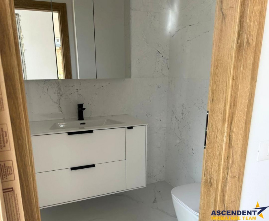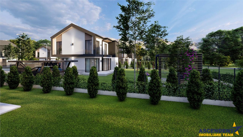 Comision cumparator: 0% ASCENDENT IMOBILIARE propune spre vanzare imobile deosebite, situate in cel mai nou, modern si bine pozitionat cartier rezidential de case, situat in Cristian, la 500 m de Centru - primarie. Complexul ofera un stil de viata aparte, prin vile construite cu materiale si finisaje de calitate superioara, compartimentari spatioase si luminoase si loturi de teren generoase. Este un cartier cu o arhitectura emblematica, cu imobile moderne si complet functionale, a caror design interior si exterior vorbeste de la sine, cu o priveliste deosebita si nu in ultimul rand cu unitati locative care vor creste ca valoare in timp, privind asta ca investitie. Ansamblul ofera beneficiile unei vieti de calitate care ar trebui sa fie firesti si la indemana oricui in lumea moderna si de aceea dezvoltatorul vine in intampinare cu flexibilitate si conditii avantajoase de achizitie, atat pentru persoane fizice, cat si juridice. Cartierul se prezinta pe o configuratie de 24 de vile spectaculoase, din care opt deja avansate, construite pe loturi de 600 mp de teren, orientate spre Sud, cu vedere spre Postavaru, Bucegi, cetatea Rasnov si nu numai. Imobilele valorifica fiecare centimetru patrat din aria utila si se desfasoara pe o compartimentare atractiva, unde la parter avem windfag, baie de serviciu, dressing, spatii de depozitare sub scara, tip sertare, living cu bucatarie si dining, de peste 47 mp si cu iesire pe terasa si scara interioara, placata cu lemn lacuit, balustrada din sticla securizata si mana curenta din lemn, care ne poarta spre etaj unde identificam trei dormitoare, din care unul cu baie proprie, hol si o baie spatioasa. Din punct de vedere tehnic, structura este din caramida Porotherm de 30 cm, cu stalpi si planseu din beton armat, acoperisul este din tabla Bilka, ce coboara elegant pe fatada imobilului, podul termoizolat cu minim doua straturi de vata minerala de 10 cm, la exterior termoizolatie din vata bazaltica de 10 cm cu tencuieli decorative structurate, aticuri izolate cu sort de tabla, incalzire in pardoseala pe toata suprafata utila, balustrade de sticla, , tamplaria este Salamander cu 3 foi si 6 camere, centrala termica Viessmann si multe alte elemente personalizabile. Proprietatile beneficiaza de toate utilitatile, respectiv gaz, apa, curent, canalizare, internet, iluminat public si acces la drum public de 10 m latime, cu trotuare, spatii si rigole de scurgere, in apropiere de statie RAT, magazine, primarie, scoala, gradinite si alte puncte de interes. Din punct de vedere geografic, pozitionare este centrala, avand in vedere accesul facil catre oras, la doar 10 minute, Poiana Brasov, Predeal, Rasnov, Bran, Zarnesti, Ghimbav, Codlea, zone aflate circular in jurul Cristianului. Pretul nu include TVA. Consilier dedicat alesei oferte: domnul George Mosor Telefon/ WhatsApp: 0732847048