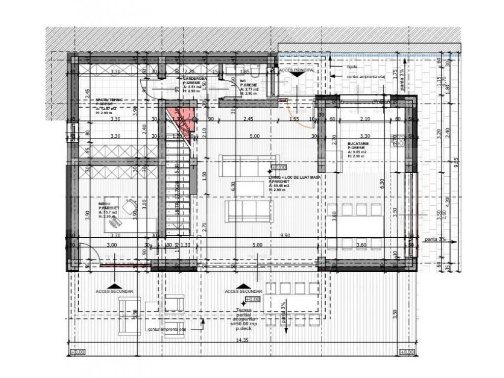 BLITZ vă propune spre vânzare o locuință individuală cu adevărat specială, amplasată în zona Popești-Deal, un cadru în plină dezvoltare, apreciat pentru liniște, intimitate și panorama spectaculoasă asupra împrejurimilor. Proprietatea impresionează atât prin designul arhitectural scandinav, cu acoperiș tip terasă într-o apă, cât și prin calitatea superioară a execuției și a materialelor utilizate, acestea fiind elementele definitorii ale proiectului. Date tehnice & compartimentare: - Suprafață teren: 620 mp - Suprafață utilă: 172 mp - Terase: 90 mp - Bonus: cameră de depozitare / spațiu tehnic de 10 mp – extrem de util și rar întâlnit în proiectele actuale Parter: - Living + bucătărie open space - Birou - Baie - Cameră tehnică / depozitare - Terasă acoperită de 50 mp cu priveliște superbă Etaj: - 3 dormitoare - 2 băi - 2 terase, ideale pentru momente de relaxare în aer liber Specificații & dotări premium: - Izolație termică exterioară cu polistiren de 15 cm - Feronerie Salamander Brugmann cu 3 foi de sticlă - Încălzire în pardoseală pe întreaga suprafață - Centrală termică pe gaz (cu posibilitatea de a opta pentru pompă de căldură) Locuința se predă în stadiul de semifinisat, cu posibilitatea de a adapta unele elemente în funcție de stadiul lucrărilor — un avantaj pentru cei care își doresc să-și personalizeze viitorul cămin. Termen finalizare: vara anului 2026! Dacă sunteți în căutarea unei case cu personalitate, construcție de calitate și un cadru care oferă liniște, intimitate și o panoramă deosebită, sunați-ne cu încredere pentru a discuta mai multe detalii! Cod ofertă / ID BLITZ: P159060 Id intern: P159060