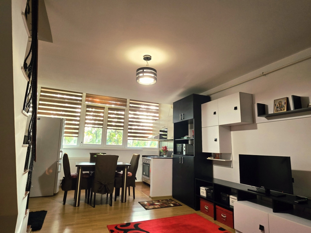 PROPRIETAR, ofer spre vanzare Apartament 2 Camere tip duplex, luminos, spatios, bine compartimentat, reamenajat, mobilat modern si utilat complet, la cheie, cu acte finalizate, gata de mutare. Descopera confortul unui apartament decomandat, situat intr-o zona linistita si accesibila a cartierului Berceni (mijloace de transport, magazine, scoli, parcuri, loc de joaca). Ideal pentru locuinta sau investitie (inchiriere). Apartamentul este situat la etaj 5 mansarda [Cladire P+4+M]. Acesta reprezinta supraetajarea unui bloc reabilitat termic de 4 nivele cu structura beton si caramida, constructie finalizata 2014, suprafata totala 80,98 mp, suprafata utila 56,6 mp, ce ofera un ambient modern si confortabil si este compus din living generos cu bucatarie, camera dormitor, hol si baie, fiind pozitionat pe 2 niveluri, tip duplex. FACILITATI: Mobilat si utilat complet: Centrala termica proprie, aer conditionat, bucatarie mobilata si utilata complet [plita, cuptor electric, hota, cuptor cu microunde, frigider), masina de spalat, tamplarie PVC cu geam termopan [incl. plasa insecte] si jaluzele noi, fereastra Velux, usa metalica la intrare recent schimbata, canapea coltar in living, mobila facuta la comanda pentru zonele de dining, living si dormitor, dressing generos, adaptat nevoilor tale de zi cu zi. Spatiu de depozitare privat ofertant [pod] cu acces din interiorul locuintei. Loc de parcare ADP platit, situat chiar in fata intrarii in scara blocului, transfer contract titular facil – un mare avantaj in zona (la scara). Bransamente individuale la toate facilitatile orasului – Contracte individuale de gaze si curent electric; Apometru inteligent (transmiterea indexului consumului de apa se face in mod automat). Detectoare automate de gaze naturale și pe casa scării, nu doar în locuința. Camere supraveghere video si interfon la intrarea in scara. Internet + cablu TV fibra optica Digi. Asigurari locuinta PAD si facultativa active. Revizii instalatie gaze, centrala termica si aparat de aer conditionat la zi. Gresie, faianta, parchet, usi interior din lemn, scara interioara, ce aduce un aer contemporan, modern si cochet locuintei prin design-ul sau. Blocul este situat la 3 minute de statia STB Straja [76, 381], linie directa catre Centru [Piata Unirii, Universitate, Piata Romana, Piata Victoriei], 5 minute de statia STB Resita [102,116,220] linie directa catre Brancoveanu/Oraselul Copiilor - Parcul Tineretului, Complex Vitan, Piata Titan, Bd. Nicolae Grigorescu, linie directa catre Grand Arena Mall, Selgros, Hornbach, Jumbo, Auchan. 8 minute pana la statia de tramvai Sos. Giurgiului [7,19,25], linie directa catre Eroii Revolutiei, Parcul Carol I, Piata Unirii, linie directa catre Complex Vulcan, Calea 13 Septembrie, Drumul Taberei si Militari. 4 statii STB pana la metrou Piata Sudului, 4 statii STB pana la metrou Eroii Revolutiei. 5-6 minute cu masina / 20-25 min pe jos pana la Eroii Revolutiei, Brancoveanu, Piata Sudului. In imediata apropiere: Piata Resita, Mega Image, Complex Comercial Huedin, Profi, Penny, Lidl, scoli, gradinite, loc de joaca. Disponibil imediat. Oferim si cerem seriozitate. Se accepta si credit. Detalii in privat.