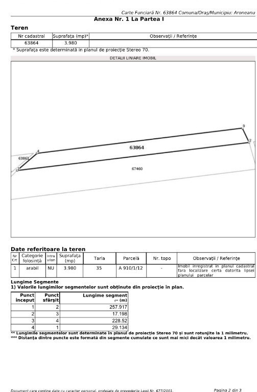 Proprietar Vand 1 hectar de teren in Loc.Rediu Aldei Comuna Aroneanu Terenul este situat la 8-9km TG.cucu si 4-5km de viitorul Spital Regional Iasi,Aqua Parcul din Moara de Vant,acces rapid la aeroport,terase etc Daca i ti doresti un loc retras cu acces la padure,un loc nepoluat,linistit dar si aproape de oras acesta este terenul de care ai nevoie In momentul de fata terenul este Extravilan dar este cuprins in noul PUG Aroneanu ca viitor intravilan iar pe site-ul primariei gasiti termen maxim de finalizare sf 2026 al lucrarii PUG Terenul nu dispune de utilitati, dar se afla in spatele caselor accesul la teren facandu se pe drum de tara ne-amenajat. In sat este tras teava de gaz,apa,iar acum se lucreaza la partea de canalizare! Terenul este despartit la mijloc de un drum satesc ..din cate stiu eu in viitor va fi amenajat de primarie. Proprietatea se preteaza pentru cabane,casa modulara din containere,micro-ferma,livada,zmeura,mure,albinarit,lavanda si lista continua ... In partea de sus si in lateral dispuneti de padure va puteti plimba animalutele de companie pe marginea padurii,puteti desfasura activitati cu ATV sau Moto etc. Te rog ia in calcul faptul ca Iasul se dezvolta intr un ritm rapid iar cei care vor lucra la Spitalul Regional vor cauta proprietati cat mai aproape de locul de munca,dar si de oras. In 10 minute poti ajunge in oras comparativ cu cei care strabat artera CUG,Pacurari sau Bucium stand in coloana si cate 1 ora pentru a ajunge la servici sau acasa. Acte: proprietar,schita cadastrala,intabulare,impozit platit. Pentru mai multe detalii dati mi un telefon si putem povesti. Multumesc tuturor 0749474444