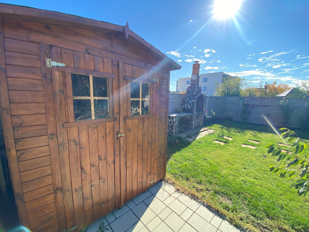 Vand duplex modern, complet mobilat si utilat, situat in cartierul Imago, Mosnita Noua, la doar 8 km de centrul Timisoarei. Pozitionare excelenta: 20 m de sala de sport si 300 m de noul Lidl. Proprietatea este pe un singur nivel (parter), 70 mp utili + terasa acoperita 21 mp + debara 7 mp. Teren total 301 mp. Compartimentare: hol, living, bucatarie, 2 dormitoare, baie, terasa, debara, pod. Cosntructie din caramida porotherm 25cm, izolatie 10cm, acoperis din tigla ceramica, toate utilitatile: APA, CANALIZARE, GAZ, CURENT, INTERNET. Se vinde complet mobilat si utilat totul ramas in casa, inclusiv electrocasnice premium: - Centrala termica Ariston Cares Premium + instalatie cupru - AC Whirlpool SPIW 312L - Cuptor incorporabil Whirlpool AKZ 6230 - Plita incorporabila Whirlpool ACM 847 BA - Masina de spalat rufe Beko WTE 7702 B0 - Masina de spalat vase Bosch SMV53L80EU - Combina frigorifica Beko RCNA406E40ZXBRN Curte complet amenajata fata spate: Gard, gazon, pavele, sistem irigare automat (hidrofor + aspersoare), gratar zidit din caramida, casuta de gradina. Parcare privata in fata casei + 2 locuri suplimentare in fata portii. Nu necesita investitii. Ideal pentru cine doreste o casuta complet echipata si gata de mutat. Pret: 150.000 EUR vanzare directa de la proprietar. Se accepta credit ipotecar.