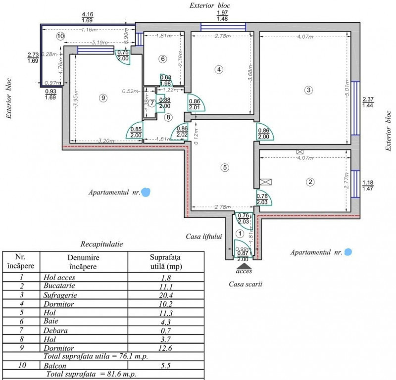 Proprietar, vând apartament 3 camere, modelul mare (81,6 mp), situat în zona Orizont - Piața Sud, pe str. Castanilor nr.4. Este o locuință curată, luminoasă și spațioasă, ideală pentru o familie care dorește să se mute într-una dintre cele mai solide construcții din Bacău. COMPARTIMENTARE DEOSEBITĂ (81,6 mp conform RELEVEU atașat în galeria foto): • Suprafață totală (inclusiv balcon): 81,6 mp • Suprafață utilă: 76,1 mp • Suprafață construită: 110,68 mp • Bucătărie mare (11,1 mp): Spațioasă, loc de luat masa pentru toată familia. • Hol pătrat imens (11,3 mp): O adevărată cameră în sine, oferă o senzație de spațiu imediat ce intri în casă. Poate fi amenajat ca zonă de zi/birou. • Spații depozitare: include debara. • Balcon generos (5,5 mp): Modelul lung, în formă de L. Este închis, oferind protecție împotriva intemperiilor. LOCAȚIE EXCELENTĂ: • Blocul este situat pe str. Castanilor nr. 4, între Mega Image (Curcanul de Aur) și biserica Sf. Gheorghe. • 2 min. de mers pe jos: Piața Sud, Mega Image, stație autobuz. • La doi pași de unele dintre cele mai bune școli din Bacău: Şcoala gimnazială nr. 10, Grădiniţa cu program prelungit nr. 28 şi Şcoala gimnazială nr. 27 George Bacovia. • 10 min. de mers pe jos de Universitatea „Vasile Alecsandri”, Spitalul Județean și Parc. • Locuința este ideală pentru familii, fiind situată într-o zonă liniștită, verde și extrem de civilizată. RENOVARE ȘI DOTĂRI 2025 (Investițiile grele sunt gata): • Pereți și tavane: Decopertați până la placă și refăcuți complet (tencuială, glet, 3 straturi lavabilă albă). • Tâmplărie premium: Termopane noi (2025) Salamander 6 camere, cu 3 garnituri și 3 foi de sticlă (tripan). Pervaze interior și exterior. • Baie: Renovată integral în 2025 (instalații, gresie, faianță și mobilier noi). ARE FEREASTRĂ! • Centrală termică proprie, instalație realizată din țevi groase de cupru, • Ușă metalică la intrare. • În camere a fost păstrat parchetul original din lemn masiv (ideal pentru recondiționare). Acesta este într-o stare bună și reprezintă o bază excelentă pentru reabilitare. • Apartamentul reprezintă o „pânză albă”, fiind pregătit pentru ultimele finisaje (parchet și uși interioare), scutindu-vă de partea grea a renovării. DETALII BLOC: • Structură MONOLIT (1970): Beton armat turnat integral (direct în cofraj, nu din prefabricate), rezistență seismică excepțională și izolare fonică superioară panourilor prefabricate și multor blocuri noi, unde se face adesea economie la materiale. • Expertiză tehnică: Blocul a fost expertizat în anul 2011 și încadrat în clasa RS3 (risc seismic redus). Această certificare oficială confirmă stabilitatea imobilului și permite obținerea oricărui tip de credit bancar (ipotecar sau Noua Casă). • Utilități din construcție: Blocul este prevăzut din proiectare cu hidrofor și bazin de apă propriu, asigurând presiune maximă la apă în permanență, indiferent de consumul din oraș. • Etaj intermediar (7 din 10), oferind o vedere panoramică superbă pe ambele fețe ale blocului. • Lift nou (2022): Marcă OTIS, modern și rapid. • Scară curată și civilizată, cu vecini liniștiți (mulți profesori, medici, ingineri). DETALII VÂNZARE: • Preț: 79.000 €. • Toate actele sunt la zi. • Se acceptă credit ipotecar sau programul "Noua Casă". • Comision 0% (vânzare directă de la proprietar). • Exclus contactarea de către agenții imobiliare. • Vă rog sunați pentru alte detalii și vizionare între orele 08:00 - 20:00.