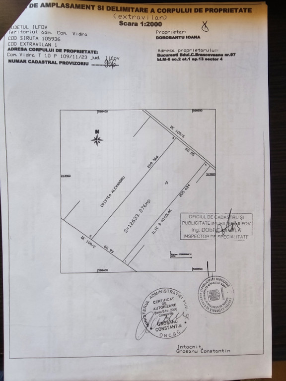 -Vând teren pentru investiție sigura,se poate lotiza mai puțin,Com Vidra,sat Sintești 12,633mp cu o deschidere de 61m,terenul se află la o distanță de Sos principala circa 150 ml. -Terenul are asfalt și curent electric până la proprietate..Mai multe detalii telefonic!