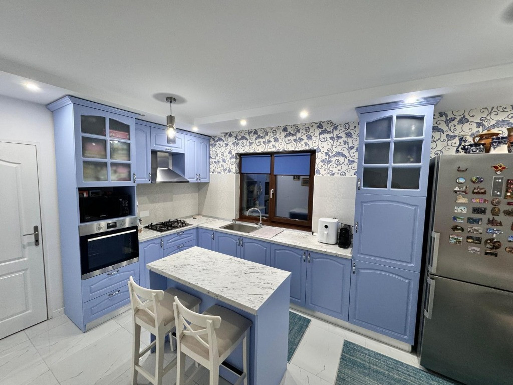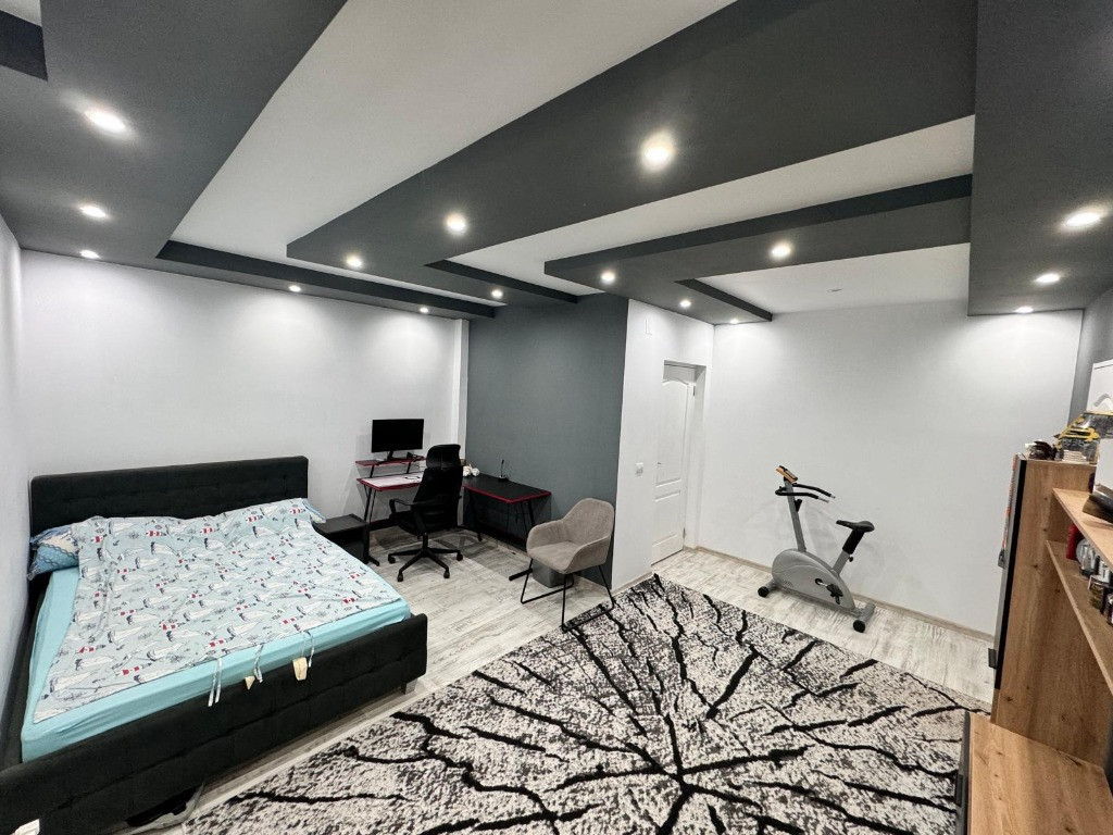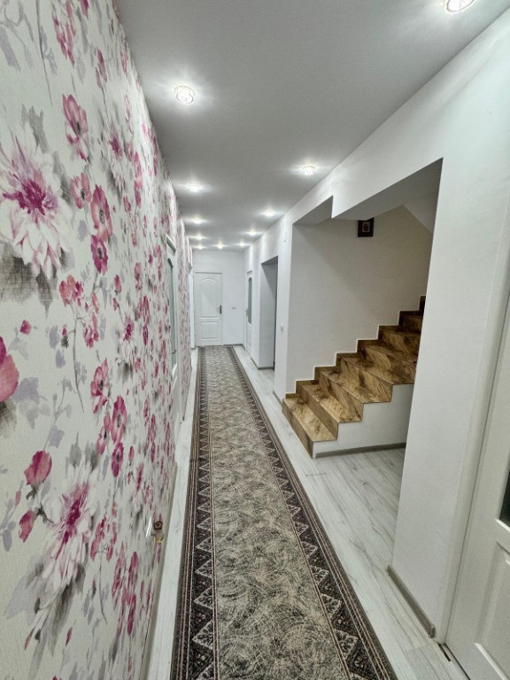 Vand casa P+1E+M cu suprafata utila de 308,52mp, compusa din parter:garaj, 2 holuri, living cu iesire pe terasa, bucatarie cu camara, baie de serviciu, dormitor cu dressing si baie proprie, camera tehnica cu spalator. Etaj: hol generos, 3 camere fiecare cu dressing si baie proprie si o terasa spatioasa. Mansarda de 56mp este necompartimentata. Construita cu atentie si responsabil, casa beneficiaza de structura din benton armat, caramida brikston, acoperis cu tigla TonMir cu parazapezi si folie anticondens, termoizolatie de 10cm. Tamplaria este Gealan cu 5 camere si 3 randuri de sticla. Gresie si faianta portelanata, obiecte sanitare de calitate. Curtea amenajata cu alei betonate si 4 locuri de parcare. Casa se preteaza ca locuinta rezidentiala,centru de batrani,centru de reabilitare,sediu de firma. Casa se vinde la pretul de 285000€ cu 617mp teren