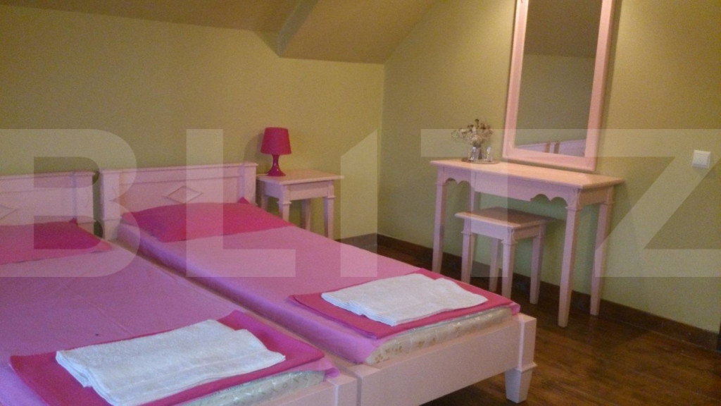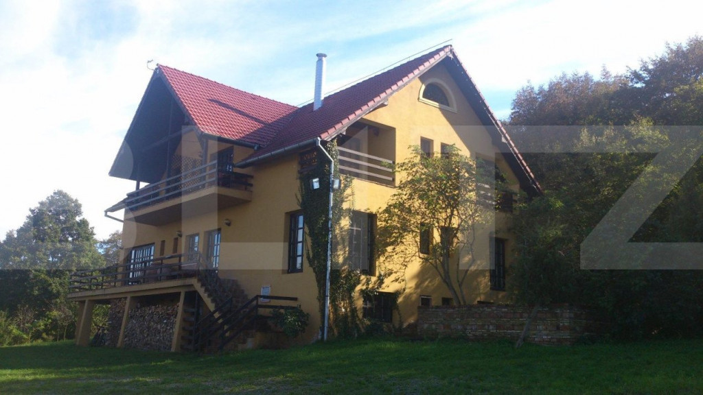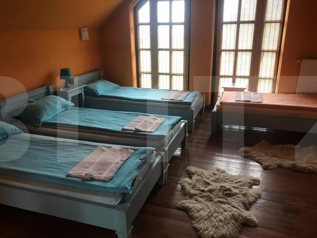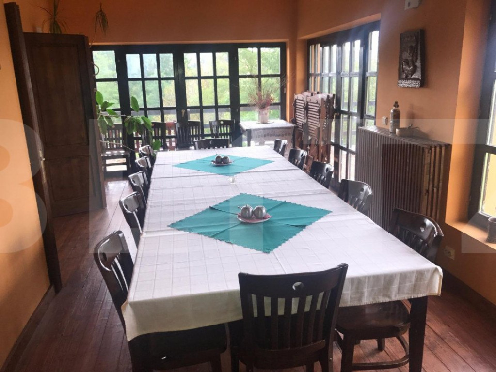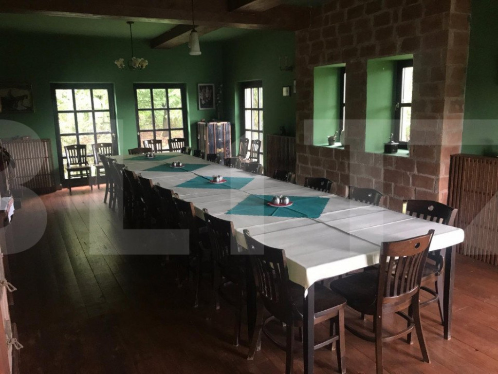 Proprietate deosebita cu real potential in domeniul alimenatatie publica-hotel-sala evenimente-resort. Situata la 18 km de centrul Clujului la liziera padurii, proprietatea este desfasurata pe o suprafata de 16.500 de mp, cu acces din E 60, front de cca 100 de ml si dispune pe ea, de un lac natural ( argila) de cca 3000 de mp, platouri plane, imobil de 600 de mp cu 9 camere cu baie propie, bucatarie, loc de servit masa, terase, spatii tehnice, bar-receptie si altele. Exista posibilitatea montarii sau construirii unei sali de nunti de capacitate mare, loc de promenada , mini teren de golf, piscina si altele. Proprietatea are stejari, goruni, plopi si alti copaci care dau un aer de relaxare, asigura intimitate, dar si antifoneaza traficul soselei. Exista posibilitatea de extindere a suprafetei de teren de pana la 3.2 ha. Cod ofertă / ID BLITZ: P97122 Id intern: P97122