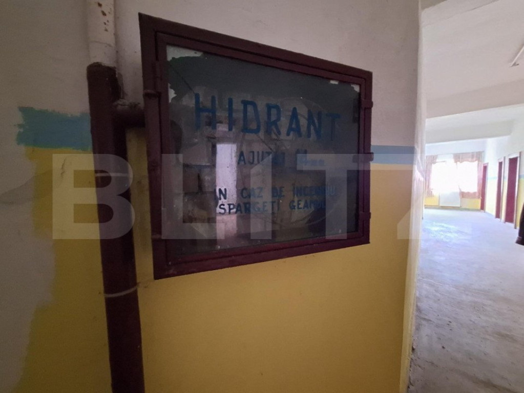Blitz propune spre vanzare o cladire compusa din: - 1857 mp, bloc p+2 de 737 mp - 75 de camere, 2 spatii comerciale situate in curte si compuse din bazin de inot descoperit si platforma amenajata, in suprafata de 707 mp, respectiv magazie, remiza pompieri, baie, 2 holuri, 4 birouri, sala de mese, 2 grupuri sanitare, atelier mecanic, spalator cu dus; - 3 hale productie in suprafata utila de 457 mp; - teren de fotbal cu tribuna 1ha, situata intr-o zona ideala pentru investitii. Beneficiaza de toate utilitatiile (apa, gaz, curent monofazic, trifazic, hidranti pe fiecare palier). Aceasta proprietate poate fi valorificata pentru a fi utilizata ca si camin de batrani, oferind posibilitati nelimitate de afaceri pentru investitorii interesati, amplasata intr-o zona nepoluata, ferita de curenti puternici de aer, de zgomote, vibratii sau mirosuri dezagreabile. Nu ezitati sa ne contactati pentru mai multe informatii sau pentru a programa o vizionare. Suntem aici pentru a va ajuta sa gasiti acel imobil perfect care sa se potriveasca nevoilor si dorintelor dvs. Cod ofertă / ID BLITZ: P97414 Id intern: P97414