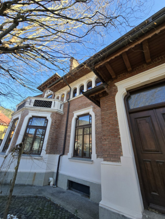 Așa cum v-am obișnuit in ultimii ani, va prezentam spre vânzare încă o proprietate excepțională in Piatra Neamț! Raritate pe piață: Vila Eliza, construcție interbelică din 1929, înscrisă ca monument istoric, amplasată într-una dintre cele mai reprezentative zone ale orașului Piatra-Neamț – Str. Ștefan cel Mare. Proprietatea este deținută de o societate și este disponibilă imediat. Imobilul păstrează un caracter arhitectural distinct, cu fațade din cărămidă aparentă, ancadramente profilate, soclu înalt și elemente decorative specifice epocii. Este o proprietate potrivită pentru cei care apreciază stilul neoromânesc și permite o utilizare reprezentativă, cu impact vizual și reputațional. Parametri cheie: Teren intravilan: 832,5 mp (din acte) / 835 mp măsurat Clădire principală (C1): regim S+P+1, amprentă la sol 254 mp Subsol: 4 camere - foarte spațios, complet amenajat, cu tavane înalte — ideal pentru cramă, sală de sport, saună, birouri (amenajare la alegere) Parter: 4 camere + 2 bai + bucătărie Etaj: 4 camere + 2 bai Anexă (C2): magazie 26 mp Curte generoasă cu mai multe locuri de parcare + garaj Potențial de utilizare (în funcție de reglementări și avize): - reședință de prestigiu - sediu reprezentativ / birouri premium - clinică / servicii medicale private (concept boutique) - spațiu cultural / galerie Preț: 1.399.000 EUR Disponibilitate: imediat La cerere: documentație, fotografii suplimentare și programare vizionare. Id intern: P228695