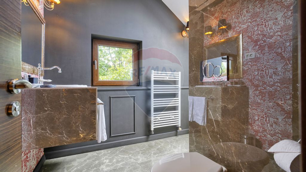 Un loc cu adevărat special, între oraș și munte Pe drumul ce leagă centrul istoric al Brașovului de Poiana, se află o proprietate aparte, gândită pentru cei care își doresc mai mult decât o simplă clădire. Poziționată pe strada Stejerișului, cu acces facil și totuși într-o zonă liniștită, proprietatea se deschide către priveliști spectaculoase asupra orașului și către pădurea ce urcă spre Tâmpa. Este genul de loc unde simți că ești departe de agitație, dar în același timp la câteva minute de toate reperele orașului. Zona și atmosfera Vecinătatea imediată păstrează un aer exclusivist: vile elegante, pensiuni discrete, case de vacanță și proiecte rezidențiale de calitate. Drumul spre Poiana Brașov adaugă o notă de prestanță, fiind unul dintre cele mai cunoscute și circulate trasee turistice din România. Fie că alegi să te bucuri de centrul vechi al Brașovului, de pârtiile din Poiana sau de liniștea pădurii, toate sunt la câțiva pași distanță. Clădirea Construită în 2008 și renovată de mai multe ori cu atenție la detalii, clădirea se ridică pe un teren de 751 mp și are regim de înălțime D+P+E+M. Suprafața utilă este de aproximativ 650 mp, iar cea desfășurată/construită de circa 730 mp. Compartimentarea este practică și versatilă: 10 camere, fiecare cu balcon propriu, 10 băi, un grup sanitar de serviciu, sală de zi luminoasă, spații tehnice bine poziționate și zone de depozitare. Parcarea proprie completează pachetul, asigurând confortul necesar pentru rezidenți sau vizitatori. Potențialul Destinația actuală este una turistică, însă imobilul se pretează perfect și ca reședință privată spectaculoasă. Poate fi o casă de familie generoasă, cu spațiu pentru fiecare generație și zone comune pentru clipe memorabile, dar și o investiție turistică solidă, cu brand propriu și clienți atrași de frumusețea Brașovului. Unicitatea Priveliștea, calitatea construcției și flexibilitatea funcțională fac din această proprietate o oportunitate rară pe piața imobiliară locală. Este un loc unde cifrele și emoția se îmbină natural: un teren potrivit, o clădire solidă și o poziție privilegiată. Consultanță personalizată Sunt Florin Ciche, consultant imobiliar în cadrul RE/MAX Central Brașov, iar misiunea mea este să aduc împreună proprietăți valoroase și oameni care le pot aprecia la adevărata lor valoare. Dacă această clădire v-a stârnit interesul, vă invit să mă contactați pentru detalii suplimentare, prezentări complete și pentru a descoperi cum poate deveni parte din planurile dumneavoastră.