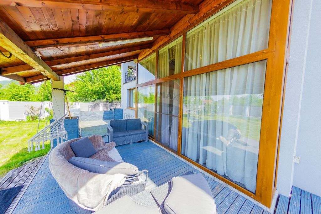 COMISION 0 % - pentru cumparator Va oferim la vanzare o proprietate deosebita , situata in localitatea Busag la cca 100 m de la sosea.Aflata pe un drum privat ( la capat de drum ), aceasta ofera liniste, lux, confort si intimitate. Casa este constructie din caramida de tip P+M, cu o suprafata generoasa , disponibila imediat, mobilata / utilata. Mobila, aparatele electrocasnice si finisajele sunt de inalta calitate iar compartimentarea si functionalitatea casei este foarte eficienta. Casa este racordata la utilitati, apa de la retea proprie, curent , iar incalzirea se face cu centrala proprie pe peleti , avand inslalatia prin pardoseala si calorifere. - PARTER - bucatarie spatioasa, camera tehnica, camera de oasperi, baie, hol si un living cu tavan inalt cu iesire pe terasa - MANSARDA- 3 dormitoare, 2 bai , dressing, hol cu balustrada si vedere de ansamblu. Pe terenul in suprafata de aproape 10 arii , regasim un spatiu de relaxare, foisor dotat si utilat. Accesul se face pe poarta cu telecomanda si toata proprietatea este supravegheata video. Pentru detalii suplimentare si programarea unei vizionari , va rugam sa ne contactati . Proprietatea este disponibila si pentru achizitie prin credit bancar. Va oferim consultanta de specialitate.