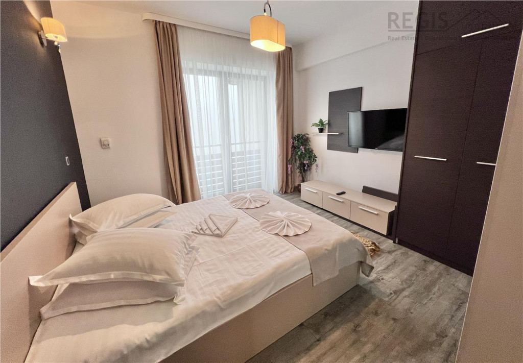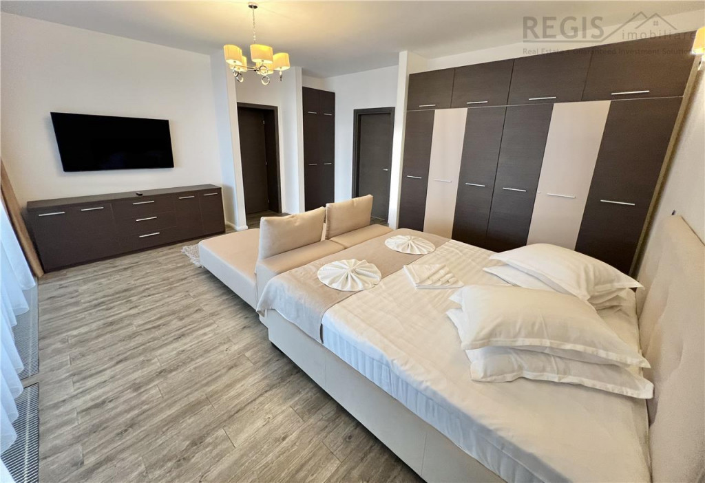 Proprietate exclusivista in mijlocul naturii la Complexul Silver Mountain, Poiana Brasov Situat la etajul 5 cu o deschidere fantastica spre munte, cu brazii la ferestre, apartamentul are 130 mp utili plus 3 terase catre munte cu suprafa de 45 mp. Videao prezentare: https://www.youtube.com/watch?v=rxynhPHQwXo Regis Imobiliare va invita sa descoperiti o oportunitate unica de achizitie: un apartament exclusivist situat in inima naturii, in prestigiosul Complex Silver Mountain din Poiana Brasov. Indiferent ca sunteti in cautarea unei investitii cu randament atractiv, sau o casa de vacanta intr-o locatie de exceptie, acest apartament reprezinta alegerea ideala pentru a va bucura de confort si frumusetea naturii. Apartamentul este confortabil compartimentat dupa cum urmeaza- la intrare hol si baie de serviciu, living cu chicineta si loc de luat masa cu suprafete foarte generoase, dormitor matrimonial cu baie proprie dotata cu cada si cabina dus. Terasa generoasa aferenta livingului cu deschidere impecabila catre munte, inca o zona cu 2 dormitoare matrimoniale dintre care unul cu terasa generoasa si deschidere catre munte. De cum vei pasi in aceasta proprietate te vor invalui confortul, luxul si linitea. Aparatura electrocasnica Bosch, 3 dornitoare matrimoniale cu bai echipate lux, 3 terase, baie de serviciu Apartamentul are mobilier de lux, clasic in stare excelenta. Caracteristici principale: - Tehnice: tamplarie exterioara din lemn stratificat Meranti, podele din PVC Gerflor, placi ceramice Graniti Fiandre si obiecte sanitare Roca, usa intrare din cadru metalic, Nusco - Pinum cu incuietoare multipunct. - Localizare: Amplasat in mijlocul naturii, in Complexul Silver Mountain, acest apartament ofera liniste si relaxare, oferind in acelasi timp acces facil la facilitatile din zona. - Suprafata generoasa: Cu o suprafata utila de aproximativ 130 mp, plus 45 mp terase, acest apartament de 4 camere ofera spatiu si confort pentru intreaga familie. - Design si utilitati moderne: Apartamentul este proiectat pentru a oferi confort sporit, cu living luminos si spatios, bucatarie deschisa, 3 dormitoare matrimoniale cu baie proprie,baie de serviciu - Priveliste panoramica: Bucurati-va de privelisti spectaculoase catre natura inconjuratoare. Facilitati in complex: - Recreere si sport: Complexul dispune de terenuri de tenis, badminton, minifotbal, locuri de joaca pentru copii, mese de ping-pong si multe altele, asigurand divertisment si activitati pentru toata familia. - Relaxare si wellness: Beneficiati de piscine, spa, sali de fitness, restaurant si alte facilitati de relaxare si socializare in cadrul complexului. - Siguranta si confort: Complexul ofera o gama larga de servicii si facilitati pentru confortul si siguranta locatarilor, inclusiv servicii de intretinere si paza permanenta. Loc de parcare SUBTERAN inclus in pret. Pot fi achizitionare separat inca 2 locuri de parcare Pentru mai multe informatii si pentru a programa o vizionare, va rugam sa ne contactati. Aceasta oportunitate de a deveni proprietarul unui apartament exclusivist in mijlocul naturii la Complexul Silver Mountain este una pe care nu vreti sa o ratati! COMISION AGENTIE ZERO