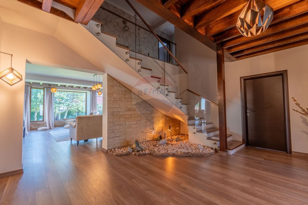 Proprietate exclusivistă de vânzare în Feleacu – două case moderne pe un teren impresionant de 2000 mp! Există case care sunt doar locuințe și există case care devin un stil de viață. În Feleacu, la doar 15 minute de centrul Clujului, se află o proprietate care îți oferă mai mult decât un acoperiș deasupra capului: îți oferă liniște, intimitate, spațiu și sentimentul că ești mereu în vacanță. Aici, soarele strălucește de trei ori mai des decât în oraș, iar aerul curat și liniștea creează atmosfera unei cabane moderne, cu tot confortul vieții de zi cu zi. În zilele de vară, grădina generoasă te invită să petreci timpul afară: copiii pot alerga în voie, tu îți poți bea cafeaua pe terasă, iar spațiul vast îți permite să adaugi exact ceea ce îți dorești – fie că e o piscină privată, un teren de sport sau o zonă de relaxare cu prieteni. Ferestrele mari lasă lumina naturală să inunde fiecare cameră, iar serile devin magice lângă unul dintre cele două șeminee. Este locul unde familia ta se poate aduna, unde prietenii pot fi primiți cu generozitate și unde fiecare colț al casei a fost gândit pentru confort și intimitate. Pe terenul de 2000 mp sunt construite două case moderne, finalizate în 2023, cu o arhitectură inspirată de stilul chalet, îmbinând piatra, lemnul și tehnologia smart într-un echilibru perfect. Casa principală (282 mp util) oferă tot ce ai nevoie pentru un trai confortabil: un living spațios cu șemineu, bucătărie open space, o sală de sport, două terase acoperite, dormitor matrimonial cu baie proprie și două dressinguri separate, alte două dormitoare, 1 baie, plus un demisol funcțional cu spălătorie și pivniță. Casa secundară (171 mp util) este gândită pentru oaspeți, rude sau copii mari: parter cu living și bucătărie separată și mansardă cu trei dormitoare și o baie. Aceasta deține și garaj pentru 2 mașini. Încălzirea se face în casa principală prin pardoseală, iar în cea secundară prin calorifere. Proprietatea deține panouri electrice de 25 kw, sistem SmartHome Loxone care controlează lumina, muzica, irigațiile și robotul de tuns iarba și sistem audio Sonos. Grădina este amenajată și întreținută printr-un sistem automatizat de irigații, cu apă pluvială recirculată, fântână forată și robot de tuns iarba acționat prin sistemul smart. Proprietatea dispune de toate utilitățile: apă curentă, gaz, canalizare. Această casă nu este doar o investiție într-un imobil, ci într-un mod de viață. Este alegerea perfectă pentru o familie care caută intimitate, confort și un loc unde să se bucure de soare, natură și liniște, fără să renunțe la proximitatea orașului.
