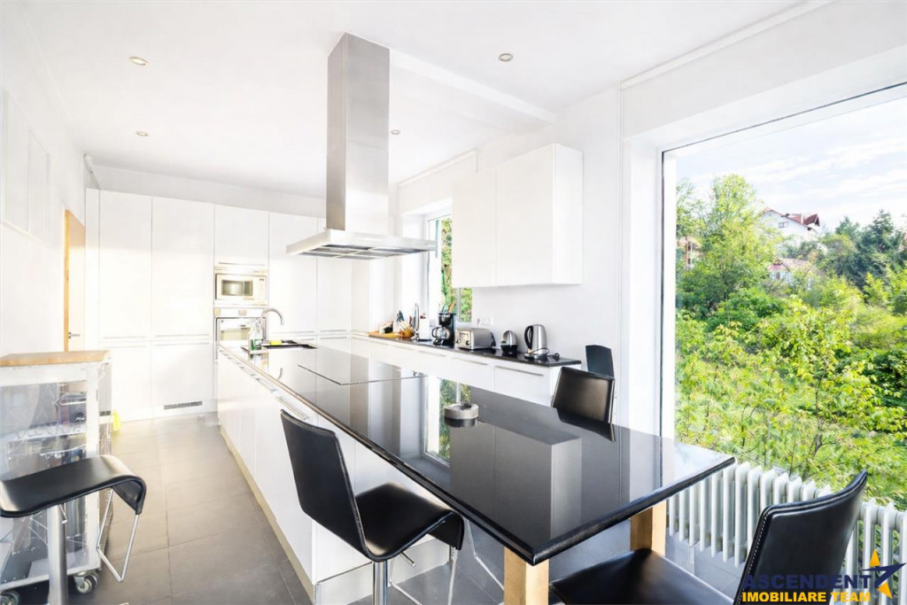 Comision cumparator:0% ASCENDENT IMOBILIARE este onorata sa va prezinte spre vanzare o vila individuala cu 6 camere, 360 mp utili si un teren impresionant de 1.600 mp, amplasata intr-una dintre cele mai apreciate zone din centrul Brasovului, unde fiecare fereastra devine un tablou viu, iar privelistea panoramica asupra orasului insoteste fiecare moment al zilei. Proprietatea ofera o experienta de locuire diferita de orice ai intalnit pana acum. Cu aproape 100 mp de terase generoase, fiecare colt al casei te invita sa respiri libertate, lumina, aer curat si energie inaltatoare. Livingul vast si luminos te intampina cu o atmosfera calda pentru momente dunice ale vietii, intr-un cadru in care orasul pare ca se aseaza la picioarele tale. Dormitoarele sunt spatioase, luminate si ofera confort autentic. Spatiile au fost gandit pentru a crea fluiditate, intimitate si o stare de bine constanta. Locuinta dispune de o bucatarie generoasa, 5 bai elegante, zone dedicate pentru sport, relaxare si lectura, plus o sauna privata care transforma rutina zilnica intr-un ritual revigorant. Structura solida din caramida, regimul de inaltime D P M si configuratia inteligenta a spatiilor confirma caracterul premium al acestei vile, creand un echilibru intre estetica si functionalitate. Domeniul de 1.600 mp, in centrul Brasovului, amplifica senzatia de libertate si exclusivitate. Gradina ofera posibilitatea de a crea un paradis personal, chiar in inima orasului. Un loc care inspira, care ofera perspective noi la fiecare rasarit, si momente de recunostinta la fiecare apus, un camin care comunica stil, pozitie si carater. Detalii, fotografii suplimentare si alte oferte similare exclusive: www.ascendentimobiliare.ro