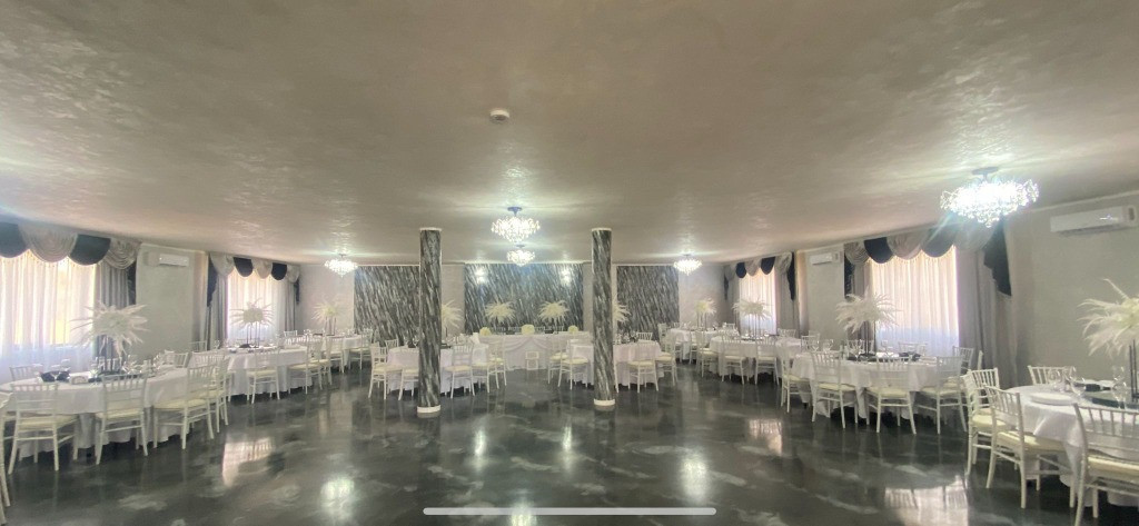 Parter: Salon de evenimente cu bucătărie complet echipată, 2 băi, foișor și grătar.