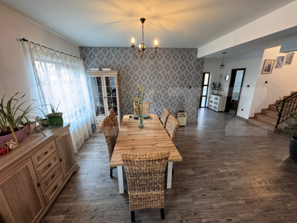 Blitz va propune spre vânzare o proprietate deosebită, situată în centrul orașului Răcari, într-o zonă liniștită și sigură, perfectă pentru familii. Imobilul se află într-un cartier cu vecini de calitate, primitori, oferind un cadru armonios și prietenos. Construită în anul 2015 pe structură din BCA, casa impresionează prin arhitectură, funcționalitate și atenția pentru detalii. Finisajele de lux și amenajările interioare sunt realizate cu gust, oferind un nivel ridicat de confort și eleganță. Detalii tehnice și structură • Suprafață utilă totală: 220 mp • Regim de înălțime: Parter + Etaj + Pod • Tâmplărie de calitate • Uși interioare celulare • Izolații eficiente: celuloză în pod, 10 cm izolație exterioară, plus izolație în podea – ceea ce asigură costuri mici de întreținere • Sistem de supraveghere pentru siguranță sporită Compartimentare – Parter De la intrare, în stânga se află o baie, iar în dreapta un dormitor confortabil. Zona de zi este compusă din: • Living generos, luminos • Spațiu de dining perfect integrat • Bucătărie bine organizată Toate camerele de la parter au acces direct către terasă, creând o legătură naturală cu exteriorul. Etaj Etajul găzduiește: • O baie spațioasă • 3 dormitoare • Dormitor pentru oaspeți dotat cu baie proprie, oferind intimitate și confort suplimentar Utilități și dotări suplimentare • Depozit în spatele curții • Put la prima pânză freatică • Două fose septice cu volum total de aproximativ 45 mc Mobilare Proprietatea se poate vinde: • Nemobilată sau • Mobilată, contra cost (prețul mobilierului: 3.000 euro) ⸻ Această casă reprezintă o oportunitate excelentă pentru cei care își doresc o locuință spațioasă, modernă și bine construită, aproape de București, în centrul unui oraș în plină dezvoltare. Cod ofertă / ID BLITZ: P160185 Id intern: P160185