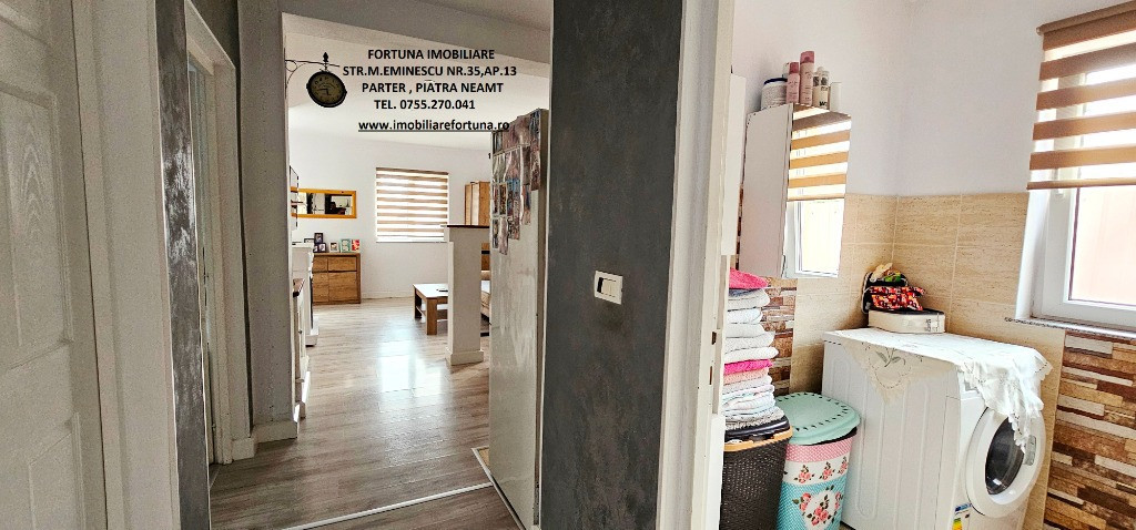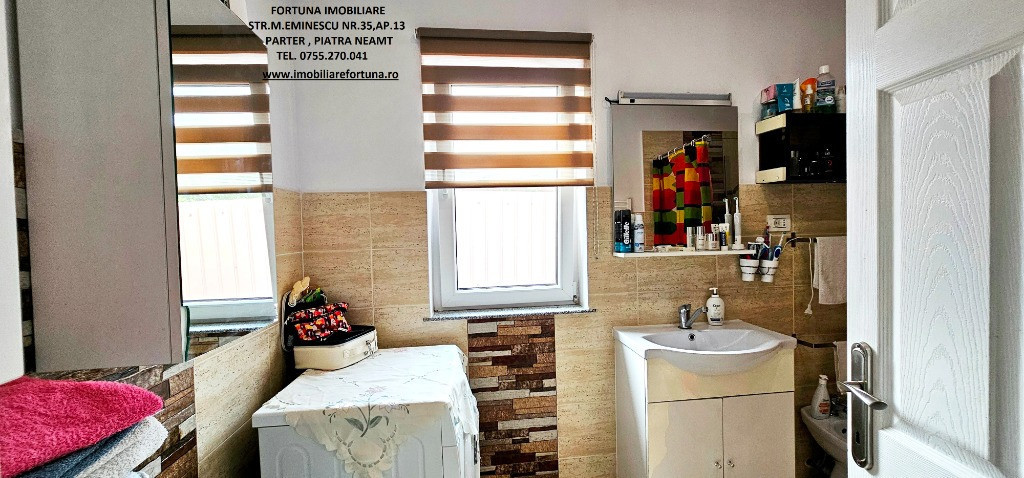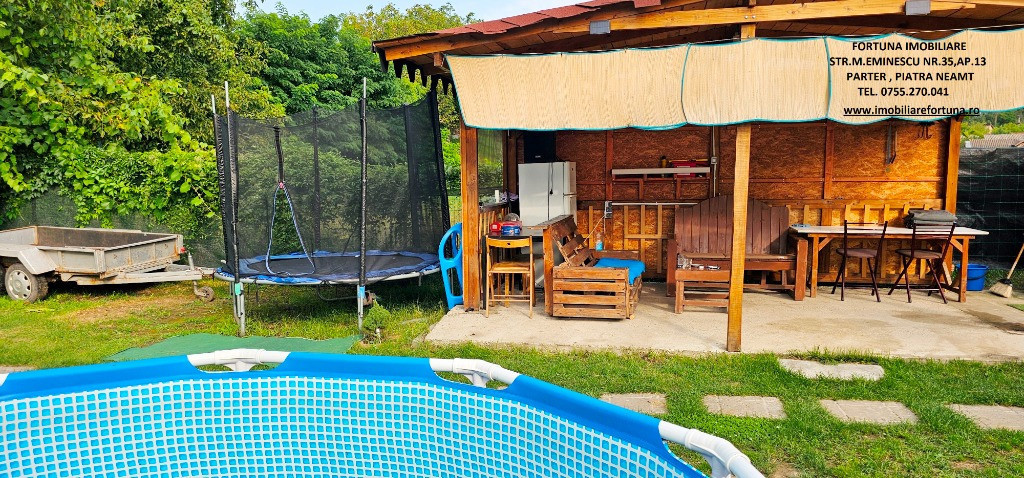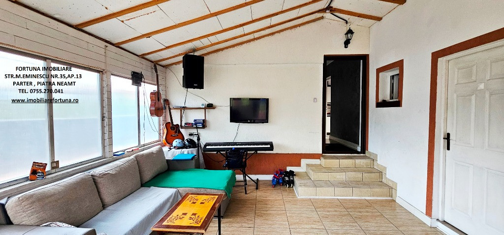 PROPRIETATE ÎN ROZNOV – VILĂ ȘI 900 MP TEREN, 110.000 EURO Dacă vă doriți să scăpați de aglomerația urbană, de grijile și stresul cotidian, FORTUNA IMOBILIARE oferă spre achiziționare această proprietate cu un proiect practic, ingenios, flexibil, cu potențial ridicat de personalizare, situată în intravilanul orașului Roznov, într-o zonă liniștită cu case, verde și aer curat, la 10 km de Mun. Piatra Neamț. Proprietatea este compusă din suprafața de 900 mp teren ( deschidere 13 ml ), pe care este edificată o casă cu regim de înălțime P+E, cu suprafața construita desfășurată de 183 mp, finalizată în anul 2020. Casa este construită pe fundații din beton armat, zidărie din BCA cu structură solidă de rezistență, acoperită cu tablă profilată mată tip Lindab. Este prevăzută cu termosistem exterior integral de 10 cm, termopane, cu planșeu ceramic între nivele ( realizat in stil italian ), ce conferă rezistență și confort tehnic. Este compartimentata astfel: Parter : living + dinning + bucătărie open space, 2 dormitoare, baie, terasă generoasă închisă, acoperită și încălzită - utilizabilă pe tot parcursul anului, precum și o cămară spațioasă unde vă puteți depozita în siguranță gemurile, compoturile, dulcețurile și alte alimente preferate. Etajul cu acces exterior este compus din : o cameră și dressing finalizate, iar baia și zona de open space sunt în curs de amenajare. Casa este foarte curată și îngrijită, amenajată cu bun gust, rafinament, simt practic și atenție la detalii. Beneficiază de sistem de supraveghere interior și exterior, sistem de iluminat smart Google Home mini, glafuri de granit, prize și întrerupătoare Gewiss. Proprietatea este conectată la apă și electricitate de la rețea, iar gazul se află la poartă. Încălzirea casei se realizează prin intermediul unei centrale pe peleți KOPH asociată cu boiler termoelectric. Terenul este împrejmuit, porțile au închidere centralizată, iar curtea este foarte frumos amenajata cu pavele, gazon, flori, foișor pe placa betonată, cu grătar, care oferă un loc perfect pentru agrement, precum și o magazie de scule. Veți beneficia de suficient spațiu pentru a crea o atmosferă de relaxare în aer liber, ideal pentru iubitorii de grătare în familie sau petreceri în aer liber. Copiii se pot juca în voie, fără grija traficului de mașini, iar pasionații de grădinărit pot amenaja un spațiu verde pentru plante și flori. În spatele casei întâlnim o mică lizieră, ce oferă o oază de liniște și aer curat, balsam pentru minte și suflet. Preț 110.000 euro ușor neg. Pentru o prezentare detaliată a acestei oferte, furnizarea unor informații suplimentare referitoare la situația juridică / identificarea imobilului și programarea unei vizionări, vă invităm la sediul nostru, Fortuna Imobiliare, situat pe str. M. Eminescu, nr. 35, ap. 13, parter, lângă fostul Tribunal, tel. contact 0755.270.041. Your comfort is our priority ! Oferta noastră completă o găsiți aici: https://imobiliarefortuna.ro/