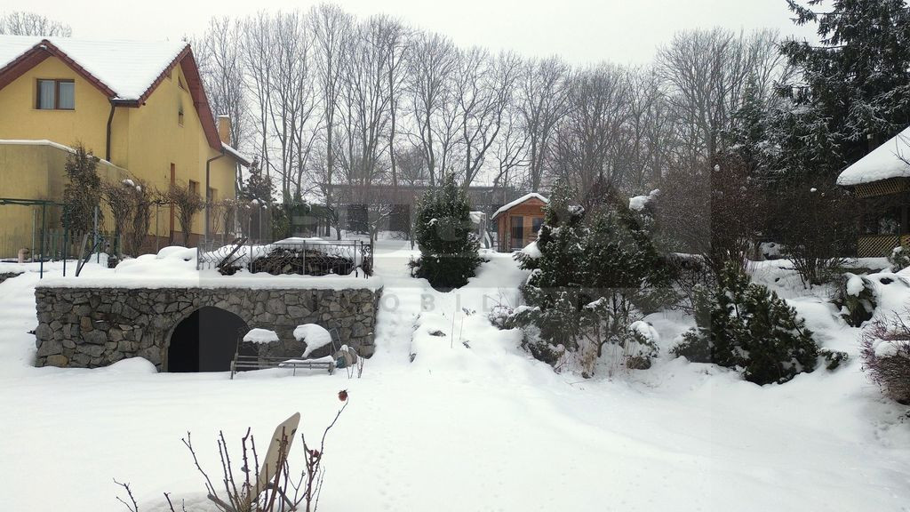 Curtea din față este generoasă și permite parcarea a 3–4 mașini, pe lângă garaj. În partea din spate, proprietatea oferă intimitate, cu o grădină amenajată, cu iarbă și pomi fructiferi. Aici există un spațiu care poate fi folosit ca beci sau cramă și o anexă de lemn, funcțională pentru depozitare sau activități casnice.
