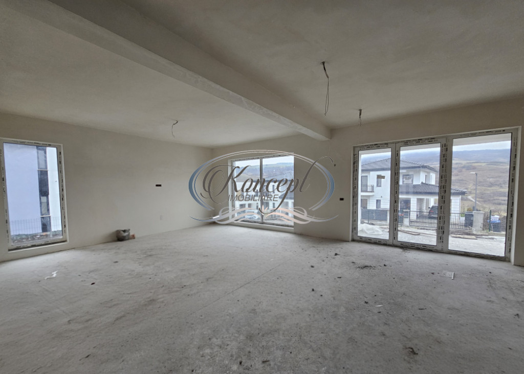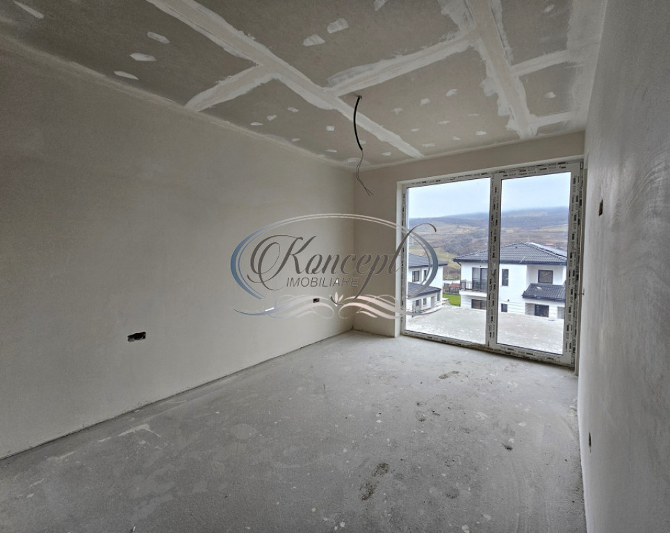 Koncept Imobiliare va ofera spre vanzare o casa individuala situata in Popesti, intr-o zona linistita, cu aer curat si acces facil spre Cluj-Napoca. Proprietatea se afla intr-un cadru privilegiat, beneficiind de un drum privat generos, cu latime de peste opt metri, iluminat public si sens giratoriu la capat. Casa are orientare mixta, ceea ce asigura lumina naturala pe tot parcursul zilei si o vedere placuta spre padure si sat. Imobilul este amplasat pe un teren de 600 mp, oferind un stil de locuire confortabil si echilibrat, cu un regim de inaltime parter + etaj si o suprafata utila de 117 mp, la care se adauga doua terase si un balcon ce totalizeaza 40 mp. Casa se preda in stadiu semifinisat, cu zidarie din caramida, structura din beton armat, izolatie exterioara cu polistiren de 15 cm, acoperis cu tigla metalica Bilka, geamuri termopan Rehau si incalzire in pardoseala pe ambele niveluri. Parcarea acoperita de 25 mp poate fi transformata cu usurinta in garaj inchis, iar in curte sunt disponibile inca doua locuri de parcare. Montarea usilor de garaj se poate monta contra cost. Compartimentarea este gandita eficient pentru confortul unei familii. La parter regasim un hol de acces, living cu bucatarie open space, camera tehnica, baie si o terasa acoperita de 22.5 mp cu iesire direct in curte, ideala pentru relaxare si petrecerea timpului in aer liber. La etaj se afla trei dormitoare luminoase, 2 dressing-uri, doua bai, un balcon, o terasa de 12 mp cu priveliste catre padure, precum si un pod spatios de 40 mp destinat depozitarii. Curtea se preda amenajata cu gazon insamntat, iar proiectul include un parc privat de 500 mp destinat exclusiv celor opt case individuale din ansamblu. Printre elementele care diferentiaza aceasta proprietate se numara designul exterior modern, compartimentarea foarte bine gandita, terasele generoase si atmosfera speciala oferita de vecinatatile formate din case noi si accesul imediat la natura. Proprietatea dispune de utilitati complete – apa, gaz, curent, canalizare – iar pentru reducerea costurilor, exista optiunea instalarii de panouri voltaice si pompa de caldura, cu galerii deja pregatite pentru automatizarea portii auto. Este o alegere excelenta pentru familii care cauta liniste, aer curat si proximitate fata de oras, dar si pentru cei care isi doresc o locuinta individuala bine construita, intr-o zona in dezvoltare controlata si cu acces rapid la punctele importante din Cluj-Napoca. Pentru informatii suplimentare, programarea unei vizionari sau pentru a afla oferta noastra completa va stam la dispozitie telefonic, prin e-mail sau la sediul agentiei noastre, pe str. Aviator Badescu, nr. 19, Cluj-Napoca. Id intern: P21055