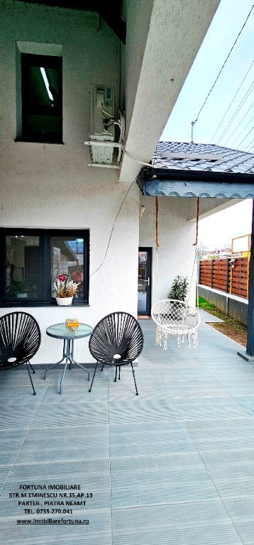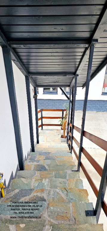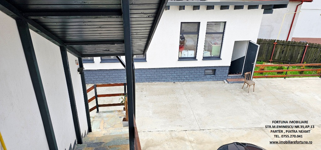 PROPRIETATE MODERNĂ , MULTIFUNCȚIONALĂ , SITUATĂ ÎNTR-O ZONĂ CU TRAFIC PIETONAL ȘI AUTO DIN PIATRA NEAMȚ, 350.000 EURO În cazul în care sunteți în căutarea unui imobil care să asigure un spațiu de locuit elegant și confortabil, precum și multiple funcționalități pentru desfășurarea unei afaceri de familie, FORTUNA IMOBILIARE vă propune spre achiziționare această proprietate, care se remarcă prin eleganță arhitecturală, funcționalitate și complexitate, situată într-o zonă cu trafic pietonal și auto din municipiul Piatra Neamț. Imobilul este compus din suprafața de 706 mp teren, pe care sunt edificate două construcții, cu destinație locuință și Spațiu comercial cu punct alimentație publică. ***Locuința cu regim de înălțime P+M, suprafața construită la sol de 133 mp și suprafața construită desfășurată de 244 mp, este edificată în anul 1960, dar extinsă, consolidată și modernizată integral în anul 2022. Este construită pe fundații din beton armat, zidărie din cărămidă, izolată exterior cu vată bazaltică, acoperită cu tablă profilata tip Bilka, prevăzută cu ferestre ADF tripan, uși interioare din lemn masiv, finisaje de înaltă calitate, bun gust și rafinament. Este compartimentată astfel: Parter : terasă acoperită, hol, living, bucătărie, 2 băi ( una cu cabină de duș și una cu cadă ) și 2 dormitoare. Mansardă cu acces exterior : hol, baie, bucătărie, 2 camere. Parterul este organizat cu grijă, oferind accesibilitate facilă și multiplă în imobil, inclusiv la etaj, ceea ce face ca aceasta proprietate să fie propozabilă pentru împărțirea spațiului în două entități locative distincte de locuit, cât și pentru amenajarea unor birouri, ateliere de lucru, cabinete medicale, minilaboratoare etc. Casa beneficiază de toate utilitățile ( apă, curent 220 si 380, gaz, canalizare), sistem de supraveghere video interior / exterior și sistem de alarmă. ***Spațiul comercial cu punct alimentație publică, în regim S+P, cu suprafața construită la sol de 54 mp, suprafața construită desfășurată de 75 mp, este edificată în 2022, pe fundații din beton armat, structură din lemn masiv, cu termosistem exterior integral de 10 mm, fiind acoperită cu tablă profilată Bilka gri antracit și prevăzută cu panouri fotovoltaice de 5 kW. Este compartimentat astfel : terasă mare acoperită, cameră ( ce poate fi utilizată ca spațiu comercial, de prezentare, recepție, birou ), hol, grup sanitar, bucătărie. Accesul la subsol se face prin exterior. Ambele construcții sunt prevăzute cu instalații de aer condiționat, bucătăriile sunt echipate complet cu mobilier la comandă și electrocasnice de ultimă generație. Există rețea de canalizare separată pentru fiecare construcție. Curtea este frumos amenajata cu alei betonate și plante ornamentale, fiind organizată cu grijă într-o zonă cu 4 locuri de parcare ( la care există acces prin intermediul unei porți cu sistem automat de deschidere/închidere) și zona verde pentru relaxare. Proprietatea oferă echilibru între job, viața personală/de familie și mediul de afaceri. Este cu siguranță o alegere perfectă pentru o familie aflată în căutarea unui cămin cochet, sau centru unei afaceri, unde confortul și funcționalitatea se îmbină cu un stil de viață relaxant și armonios. Preț 350.000 euro. Pentru o prezentare detaliată a acestei oferte, furnizarea unor informații suplimentare referitoare la situația juridică / identificarea imobilului și programarea unei vizionări, vă invităm la sediul nostru, Fortuna Imobiliare, situat pe str. M. Eminescu, nr. 35, ap. 13, parter, lângă fostul Tribunal, tel. contact 0755.270.041. Your comfort is our priority ! Oferta noastră completă o găsiți aici: https://imobiliarefortuna.ro/