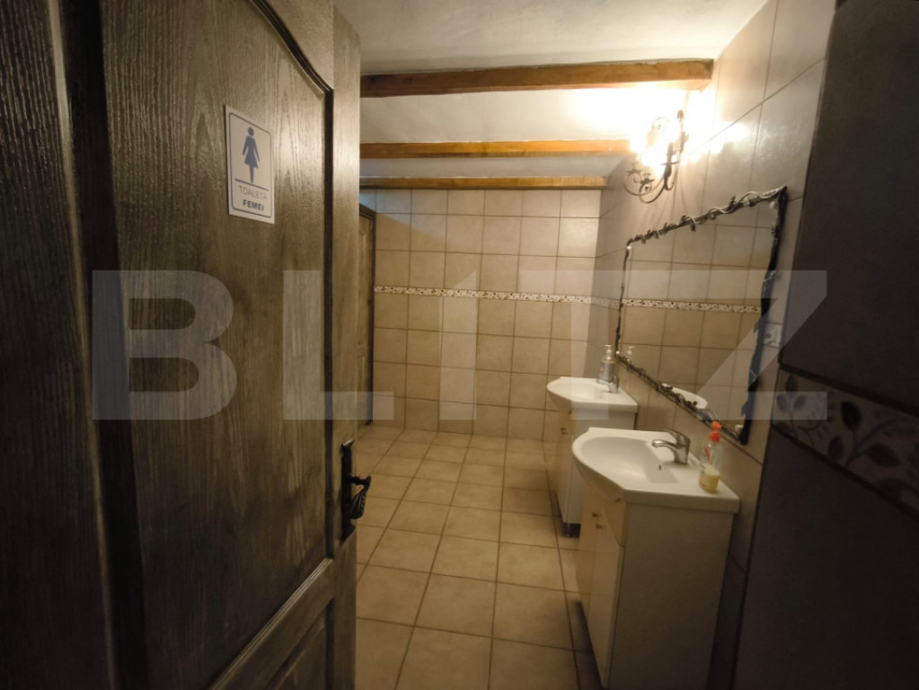 Blitz ofera spre vânzare o proprietate deosebită, cu un potențial investițional ridicat, amplasată în zona Brestei–Cernele, având o suprafață utilă totală de 1.850 mp și un teren impresionant de 23.750 mp. Proprietatea este ideală pentru dezvoltarea unei afaceri în domeniul evenimentelor, turismului, agrementului sau rezidențial, beneficiind de multiple spații funcționale, deja compartimentate eficient. Propietatea este compusa din: ???? Zonă evenimente & restaurant- -Sala principală (644 mp utili) impresionează prin: structură solidă cu grinzi masive din lemn și accente din piatră naturală; spațiu amplu, bine luminat, compartimentat eficient pentru mese numeroase; design rustic-elegant, potrivit pentru nunți, botezuri, petreceri private sau evenimente corporate. - Sala secundară (193 mp utili) este ideală pentru evenimente restrânse, conferințe sau zonă VIP. Terasa acoperită, de mari dimensiuni, amenajată cu mobilier de exterior și iluminată cu candelabre decorative, oferă un cadru elegant pentru recepții outdoor, cocktail-uri sau zonă de relaxare. Spațiul este generos și permite organizarea simultană a mai multor activități. ???? Zonă agrement – piscină & facilități exterioare Piscina de 426 mp, concepută ca ștrand, este integrată într-un spațiu exterior amplu, cu: alei pavate și suprafețe generoase pentru șezlonguri; vestiare și dușuri; teren de fotbal; bar și terasă dedicate zonei de agrement. Curtea este organizată aerisit, cu zone verzi și vegetație matură, oferind intimitate și posibilitatea organizării de evenimente în aer liber (festivaluri, petreceri tematice, team-building-uri). ???? Clădire locuință Dp+P+E Imobilul rezidențial include:11 dormitoare spațioase (6 cu băi proprii),3 livinguri, 2 săli de mese, 2 băi mari, 4 holuri, 2 bucătării. Ideal pentru: pensiune / hotel boutique, cazare pentru evenimente, clinică, centru educațional sau centru de îngrijire, reședință multifamilială, etc, ????Casa de oaspeti in supafata utila de 70 mp ???? Avantaje: ✔ Multiple funcționalități într-un singur complex ✔ Spații deja amenajate pentru operare imediată ✔ Potențial ridicat de dezvoltare sau extindere ✔ Cadru potrivit atât pentru activități private, cât și comerciale ✔Teren amplu, cu multiple posibilități de extindere sau amenajare; ✔Compartimentare versatilă; ✔Ideal pentru complex de evenimente, pensiune, centru recreativ, clinică privată, centru educațional sau reconversie rezidențială; ✔Acces facil și zonă în dezvoltare. Proprietatea oferă un mix rar între spațiu construit generos și teren extins, fiind o oportunitate excelentă pentru investitori sau antreprenori care doresc să dezvolte un proiect de anvergură. Cod ofertă / ID BLITZ: P164493 Id intern: P164493