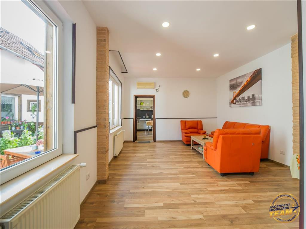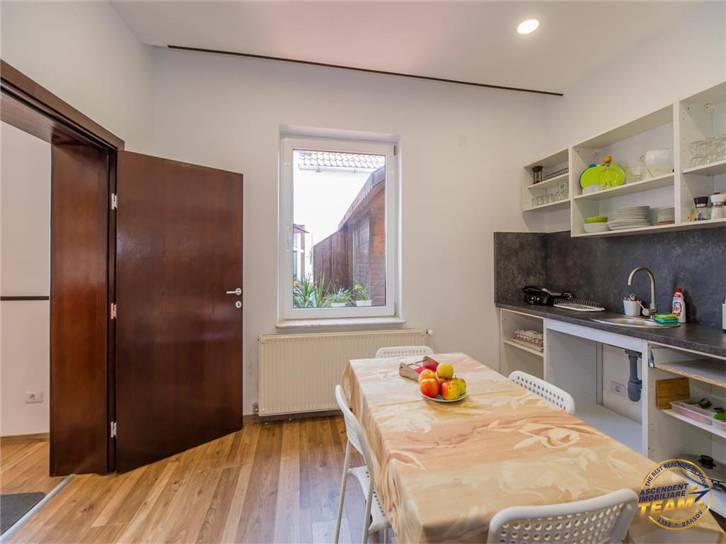ASCENDENT IMOBILIARE propune spre vanzare o proprietate situata in Centrul Istoric al Brasovului, compusa din doua case. Oferta deschide avantajul adaptarii atat pentru segmentul rezidential, dar ofera posibilitati multiple pentru a fi exploatata/ adaptata pentru activitati de turism, ca si spatiu de birouri si alte activitati comerciale. Cele doua case sunt renovate, iar atentia pentru finisajele si materialele folosite se poate usor remarca. Imobilul este configurat astfel: Casa nr. 1: are doua usi de acces din curte, dar si acces cu vitrina stradala, putand fi folosita ca si spatiu pentru activitati comerciale sau ca si spatiu de birouri, after-school, etc. La Parter regasim: - Intrarea nr. 1 deserveste un spatiu format din doua camere, o incapere principala cu destinatie de spatiu comercial, sau spatiu de birouri, after school, etc care are acces direct din strada, iar cealalta camera, poate fi folosita ca si chicineta, cu acces direct din curte si usa care comunica cu incaperea principala; - Intrarea nr. 2 deserveste un spatiu format din: un dormitor, o bucatarie, baie si un antreu cu scara interioara pentru acces la etaj. La Etaj regasim doua incaperi si acces la podul casei, cu o suprafata generoasa. Accesul la etaj se face doar prin Intrarea nr. 2. Casa nr. 2, are urmatoarea compozitie: - La Demisol se afla un spatiu de depozitare si doua incaperi care pot avea destinatie de crama, spatiu de depozitare, etc. - La Parter regasim un hol de acces cu o zona de receptie, cu acces la scara interioara catre mansarda, doua dormitoare cu baie proprie, o sala de mese cu baie de serviciu si o bucatarie cu camara proprie. - La Mansarda regasim un antreu generos pretabil pentru activitati de zi si relaxare, trei dormitoare cu baie proprie, un balcon si un studio, format din dormitor, bucatarie mobilata si utilata, baie si dressing. Studioul ne ofera o panorama splendida catre Muntele Tampa. Casele sunt renovate recent (2017-2018), folosindu-se materiale de cea mai buna calitate. Instalatiile electrice, sanitare si termice sunt noi. Ambele case au acoperisuri noi, cu tigla ceramica Bramac. Desigur ca unicitatea ofertei invita la cunoasterea in detaliu. Tur Virtual: https://roundme.com/tour/310217/view/1007846/