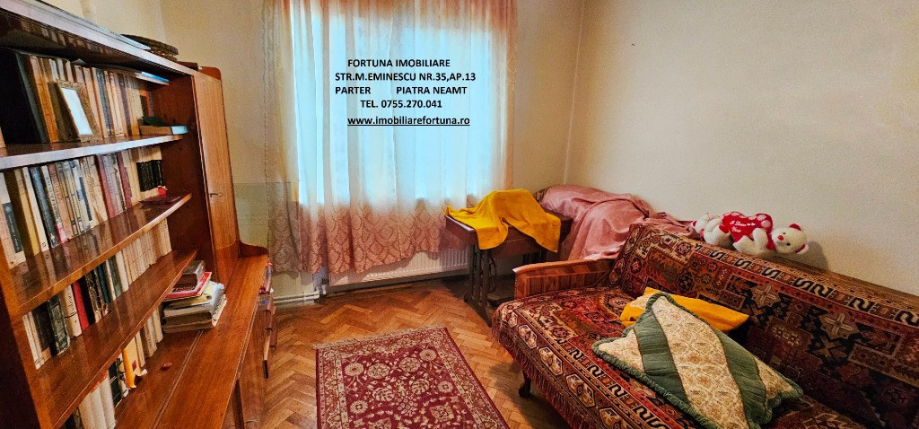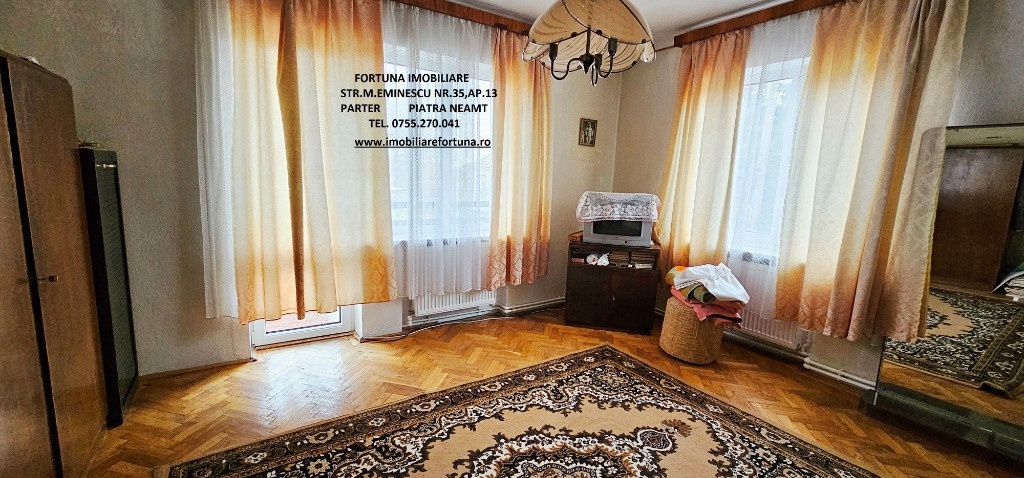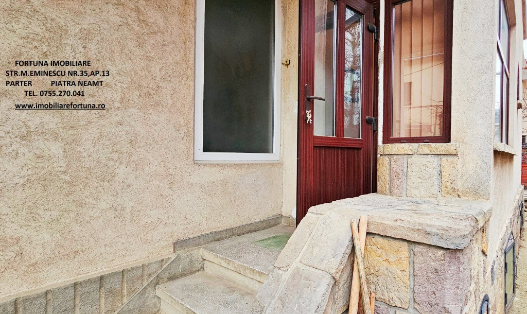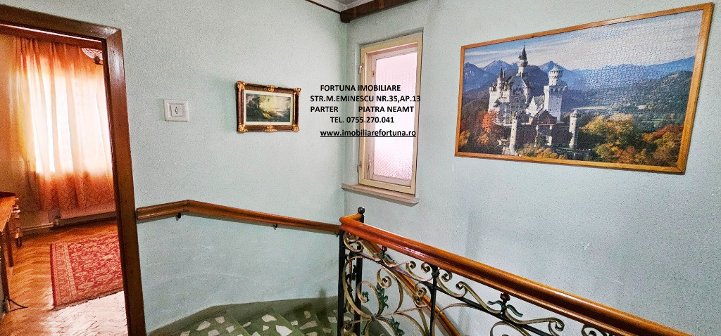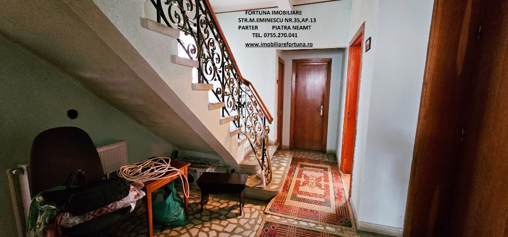 PROPRIETATE SITUATĂ ÎN ANSAMBLU REZIDENȚIAL CENTRAL, 240.000 EURO FORTUNA IMOBILIARE oferă spre vânzare această proprietate, care se remarca prin noblețe și eleganță arhitecturalăși dispune de o poziție privilegiată în municipiul Piatra Neamț. Imobilul este compus din suprafața de 256 mp teren, pe care este edificată o casă cu regim de înălțime S+P+E, cu amprenta la sol de 120 mp, suprafața utilă desfășurată de 256 mp, construită în 1974, pe fundații din beton armat, zidărie din cărămidă, acoperită cu tablă tip țiglă. Este compartimentată astfel: Subsol: beci și cramă; Parter : terasă închisă, hol, cameră de zi spațioasă cu ieșire în balcon, baie, bucătărie cu cămară și spălător; Etaj: hol, 3 dormitoare ( dintre care 2 cu ieșire în balcon mare tip terasă ), baie, terasă mare închisă și acoperită. Planșeul dintre etaje este din beton armat iar podul casei este înalt, are o suprafață generoasă și poate fi utilizat ca spațiu de depozitare. Casa beneficiază de toate utilitățile ( apă, curent, gaz, canalizare ). Este prevăzută cu centrală termică pe gaz metan și calorifere calibrate pe fiecare încăpere, însă deține și mai multe sobe de teracotă funcționale. Ca principale beneficii, imobilul se află într-o zonă rezidențială selectă. Oferă echilibru între job și viața personală/de familie, întrucât permite o ușoară accesibilitate către serviciu,instituții educaționale/medicale,centre comerciale/culturale, spații de recreere și pentru petrecerea timpului liber, alte obiective de interes relevante pentru rezidenți. Preț 240.000 euro Pentru o prezentare detaliată a acestei oferte, furnizarea unor informații suplimentare referitoare la situația juridică / identificarea imobilului și programarea unei vizionări, vă invităm la sediul nostru, Fortuna Imobiliare, situat pe str. M. Eminescu, nr. 35, ap. 13, parter, lângă fostul Tribunal, tel. contact 0755.270.041. Your comfort is our priority ! Oferta noastră completă o găsiți aici: https://imobiliarefortuna.ro/