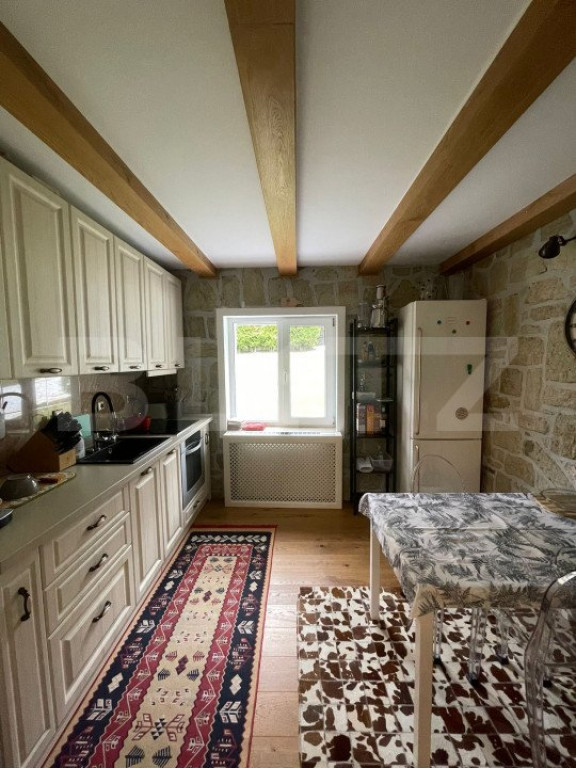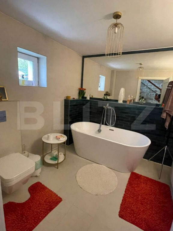 Vrei sa locuiesti intr-o oaza de liniste si intimitate la nici 10 min cu masina de centrul Clujului? Iti propun spre vanzare o vila impresionanta, cu ferestre mari, de la podea până la tavan pentru a te bucura mereu din abundentă, de lumina naturala si mai ales de o priveliste speciala spre padurea Feleacului. Casa este o constructie extrem de solida cu fundatii din beton si zidarie din caramida, si dispune de o suprafata utila generoasa de 162 mp utili, compartimenta pe 3 niveluri, astfel: - la PARTER: un living spațios și deschis de peste 55 mp, 1 bucatarie decomandata si 1 baie; parterul ofera acces direct in garajul de 23 mp, precum si la zona de terasa de peste 60 mp care inconjoara casa. - la ETAJ: 2 dormitoare luminoase și aerisite de aprox. 20 mp fiecare, cu ferestre panoramice si iesiri catre terasa, precum si 1 birou / camera pentru copil. Etajul mai ofera pe langa 1 baie si 1 dressing imens de 12 mp, spatiu ideal pentru depozitare Mobilierul atent selectat imbinat cu textile moi, detaliile din lemn natur, sau șemineul amplasat în centrul livingului adaugă o notă de confort și căldură. Toate finisajele te vor face sa resimti spatiul extrem de primitor si cozy. - BONUS la DEMISOL, casa dispune de un miniapartament de 55 mp, care poate fi mobilat dupa bunul plac, compartimentat in 2 camere, baie si 1 chicineta, spatiu ideal pentru a acomoda musafirii tai. Foisorul si minicrama din curtea casei, sau zonele de depozitare de sub scari, completeaza nevoia de spatiu si ofera tot confortul necesar pentru o familie moderna. Daca apreciezi lumina naturala,oferita de expunerea EST- SUD - VEST, privelistea panoramica deosebita, linistea, intimitatea, si totodata proximitatea fata de oras, aceasta proprietate e ceeea ce cauti! Nu ezitati sa ne contactezi pentru a discuta mai multe detalii si pentru a stabili o vizionare! Cod ofertă / ID BLITZ: P135231 Id intern: P135231