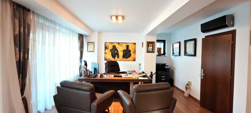 Proprietate exclusivistă de lux, de vânzare, situata intr-ian dintre cele mai prestigioase zone din București- Domenii , construita in anul 2020 și renovată în 2022, această residinta impresionanta se afla la doar 3 minute de Arcul de Triumf. Localizată în proximitatea parcului Herastrau și beneficiind de conexiuni imediate către centrul orașului, proprietatea combină perfect rafinamentul arhitectural cu funcționalitatea moderna, fiind ideală pentru cei care își doresc un cadru sofisticat, liniștit și sigur. Cladirea este amplasata pe un teren de 550 mp, in regim subsol, parter si 3 etaje, avand toate utilitatile si finisaje de lux . Suprafata totala construita este de 1126 mp, avand la subsol o parcare de 250 mp,iar restul spatiului pana la 334 mp este compartiment foarte eficient si util de proprietar . La parter o suprafata construita de 135,2 mp si o terasa acoperita si incalzita de 70 mp, iar la etajele 1,2 si 3 aproximativ 176 mp inclusiv terasele ( schitele pentru toata cladirea se afla in poze ) Proprietatea dispune de lift cu acces din parcare catre toate nivelurile, incalzire in pardoseala, doua centrale termice si panouri solare de 9,5 KW, fibra optica, wifi, sisteme de alarma, paza 24|7 . Constructia este ideala atat pentru clinica medicala, ambasada, consulat, birouri, cat si apartamente de locuit . In prezent exista birouri si apartamente, dar poate fi recompartimentata Utilitati: curent 380 V, canalizare, apa curenta, internet, cablu tv, wi fi, 2 centrale de generatie noua, panouri fotovoltaice de 9,5 KW Proprietatea se vinde pentru suma de 2580000 EURO la care NU se adaugă TVA. Oferim consultanta gratuita si facilitarea obtinerii rapide a creditului ipotecar, cu dobanda foarte buna. Oferta aparține agenție EBA Real Estate Id intern: P195110