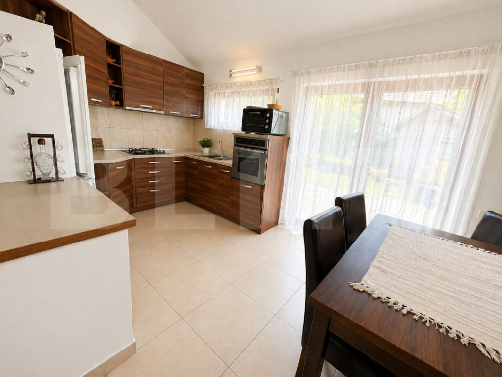 Blitz va ofera spre vânzare o proprietate rară, situată în sat Vișea, comuna Jucu – ideală atât pentru locuință familială, cât și pentru investiție, datorită celor două construcții existente pe teren. Terenul are o suprafață generoasă de 1174 mp și un front stradal de 40 ml, oferind intimitate, spațiu și multiple posibilități de utilizare. Pe proprietate se află o casă principală, nou construită în 2025, cu o suprafață utilă de 157 mp, edificată pe regim de înălțime P+1E. Construcția este realizată din cărămidă, izolată exterior cu polistiren de 10 cm și acoperită cu țiglă, fiind gândită pentru confort și durabilitate. Compartimentarea este practică și modernă: Parter: living luminos cu bucătărie open-space, dormitor cu baie proprie, hol și terasă Etaj: două dormitoare, baie, dressing și un al doilea living Locuința este finisată cu materiale moderne (parchet, gresie, faianță) și se vinde mobilată și utilată, fiind pregătită pentru mutare imediată. Pe lângă casa principală, proprietatea beneficiază de o a doua casă, renovabilă, care oferă un mare potențial – fie pentru locuință separată, casă de oaspeți sau investiție. Aceasta este compartimentată în 2 dormitoare, living cu bucătărie și baie. Utilitățile includ apă, curent și fosă septică, iar gazul se află la poartă, existând posibilitate rapidă de racordare. Încălzirea se realizează prin centrală pe lemne. Zona este una deosebită, caracterizată prin liniște, aer curat și o panoramă superbă cu vedere catre padure, fiind alegerea perfectă pentru cei care caută confort și relaxare într-un cadru natural. Fie că îți dorești o locuință pentru familie extinsă sau o proprietate cu potențial investițional, această ofertă bifează toate criteriile. Cod ofertă / ID BLITZ: P170431 Id intern: P170431
