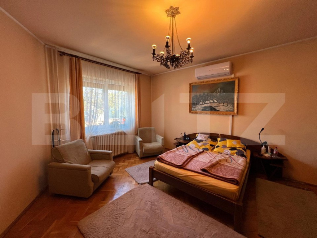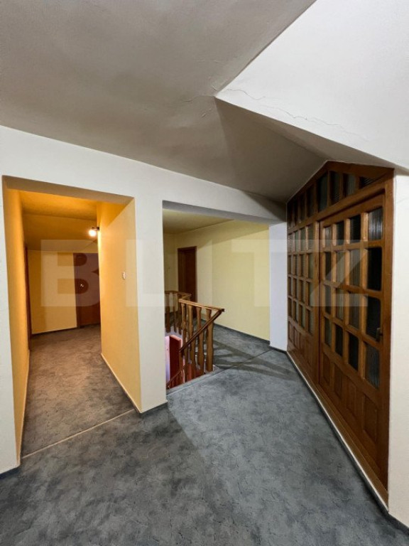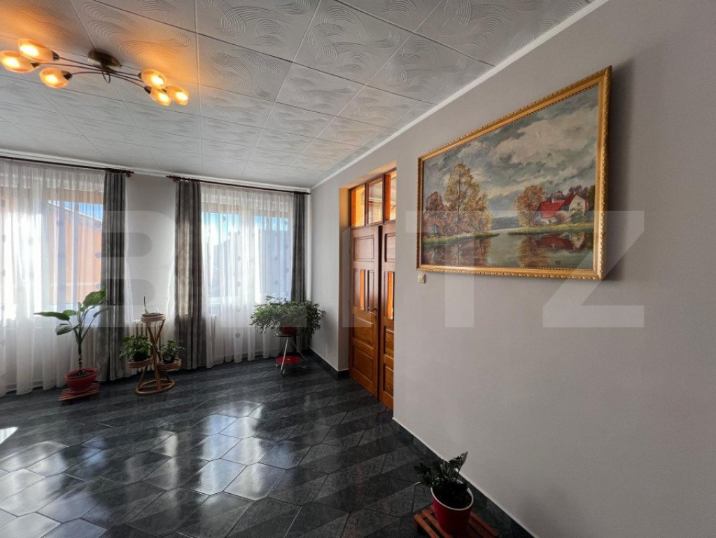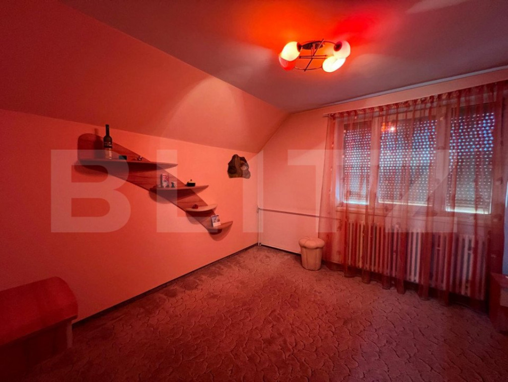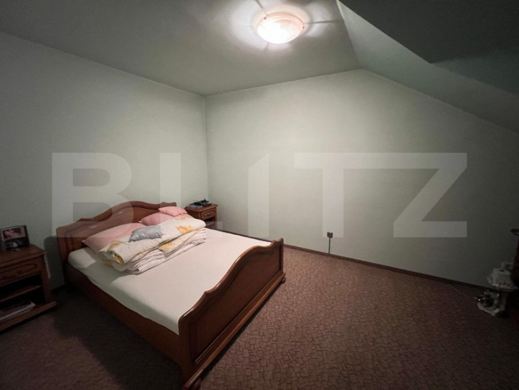 Oferim spre vânzare o proprietate versatilă, situată într-o zonă excelentă pe Strada Cloșca, amplasată pe un teren generos de 1.200 mp. Proprietatea include 3 construcții și 1 garaj, având un front stradal de 44 metri, perfect pentru multiple utilizări. Detalii proprietate: Garaj: parcare pentru 2 autoturisme, cu plaseu de beton și mansardă semifinisată, accesibilă urcand pe scări de beton. Casa principală: Distribuită pe 3 nivele: Demisol: amenajat ca atelier de croitorie de 150 mp utili, include o bucătărie pentru angajați, cameră tehnică cu centrală termică pe gaz, 3 încăperi de lucru, 1 birou și 2 toalete. Parter și Mansardă: destinate uzului rezidențial, cu o suprafață utilă totală de 300 mp, compartimentate astfel: Parter: hol de intrare, living, zonă de luat masa, bucătărie cu cămară și 1 cameră. Mansardă: 3 dormitoare, 1 baie de serviciu, 1 baie cu cadă și 1 dressing. Dotări: centrală termică pe curent, panouri fotovoltaice de 10 kW pe acoperiș pentru reducerea costurilor de întreținere. Exterior: Curte cu zonă pavată, spațiu verde, piscină zidită de 50 mp (adâncime 1,8 m) și grill zidit tip barbeque. Construcții secundare: Construcția 2: apartament de 50 mp utili, compus din cameră, hol, bucătărie, dressing și baie. Construcția 3: compusă din 3 încăperi (pentru preparate conservate, afumătorie și magazie de scule), cu o suprafață totală de 30 mp utili, și terasă hidroizolată deasupra. Proprietatea beneficiază de o fântână forată și puț forat pentru irigarea grădinii, precum și un gard solid din bolțari de beton pentru securitate. Pentru detalii suplimentare și vizionări, vă rugăm să ne contactați! Cod ofertă / ID BLITZ: P133796 Id intern: P133796