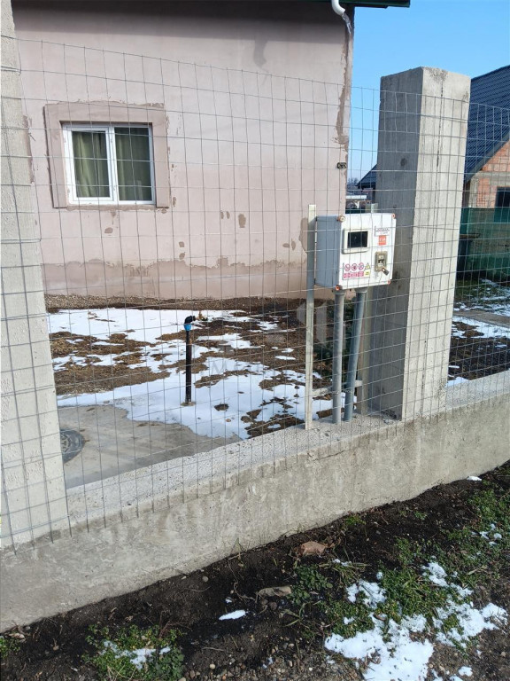 Stalpul de curent electric si conducta de apa este la limita terenului.