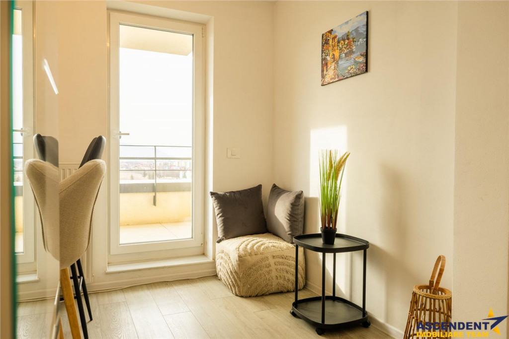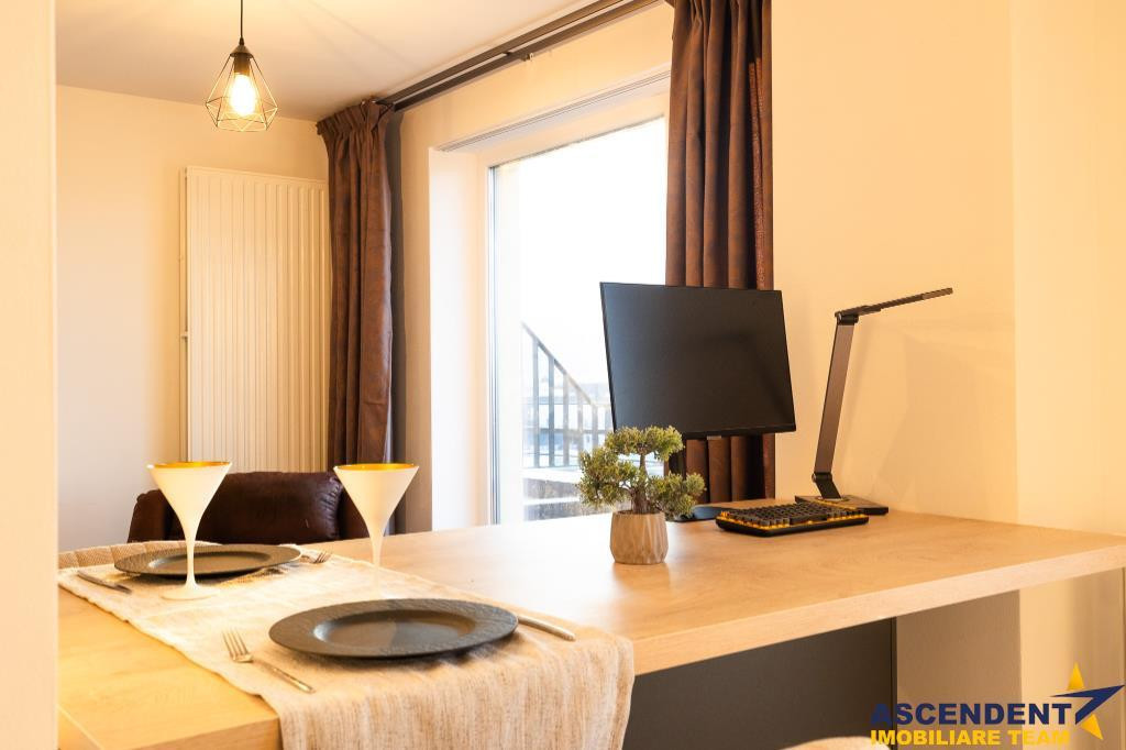 Comision chirias: 100% tva, din contravaloarea unei chirii lunare, o singura data. ASCENDENT IMOBILIARE este onorata sa va prezinte o proprietate distinctiva, situata in cel mai apreciat cartier, nou, rezidential, Tractorul, Kasper, Coresi, Brasov. Film Prezentare: https://www.youtube.com/watch?v=6RcoNWOiPQk Imobilul raspunde celor mai exigente cerinte atat ca infrastructura locala, cat si in componenta structurala, incununand calitatea vietii la care cu totii aspiram. Proprietatea dispune de o izolatie termica clasa A, izolatie fonica, centrala termica in condensare, componente sanitare portelan, terasa cu gresie antiderapanta si rezistenta la temperaturi extreme, etc. Conceptul arhitectural modern se imbratiseaza cu exceptionala infrastructura locala, ceea ce recomanda aceasta oferta, atat catre regim rezidential preferential, cat si catre segmentul investitional, datorita excelentului randament. Compozitia actuala se desfasoara pe: living spatiu studiu/ creatie - 30mp, dormitor - 15 mp, dessing - 6,5 mp, bucatarie - 6,5 mp, baie - 5mp, hol - 4mp, logie - 6mp, terasa - 12 mp. Boxa de depozitare si locul parcare special, rezervat completeaza arierea. Compozitia ofera flexibilitate si adaptabilitate spatiului interior, permitandu-va sa ajustati si sa rearanjati cu usurinta configuratia interna conform nevoilor si preferintelor dvs. Aceasta caracteristica permite optimizarea utilizarii spatiului in functie de schimbarile de lifestyle sau cerintele individuale, oferind o experienta personalizata si evolutiva a locuirii. Completeaza aceasta oportunitatea, spatiile verzi generoase si elementul surpriza. Desigur ca particularitatea ofertei invita la cunoasterea in detaliu, va putem veni in intampinare cu prezentare detailata, pe fiecare componenta. Detalii, fotografii suplimentare si alte variante similare exclusive: www.ascendentimobiliare.ro