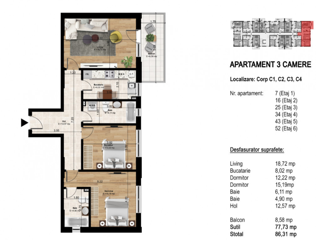 3 camere | 71 m² | Bucuresti-Ilfov / Bucuresti