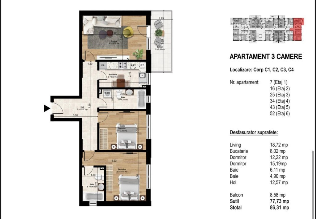 Vă prezentăm un proiect rezidențial modern cu regim de înălțime P+6, amplasat în zona Popești-Leordeni – o zonă în continuă expansiune, ideală pentru locuit sau investiție. Structura clădirii: Parter – spații comerciale disponibile, ideale pentru diverse activități (magazin, farmacie, cafenea etc.) Etajele 1-6 – locuințe disponibile pe orice etaj Tipuri de apartamente disponibile: Garsoniere – 43,68 mp 2 camere – de la 60,66 mp 3 camere – 86,31 mp Modalități flexibile de achiziție – direct de la dezvoltator: Rate la dezvoltator – 3 ani Avans 50% Diferența în rate lunare fixe timp de 3 ani Preț: 1.500 €/mp + TVA Rate la dezvoltator – 5 ani Avans 50% Diferența în rate pe 5 ani Preț: 1.600 €/mp + TVA Plată cash – 90% avans Preț special: 1.100 €/mp + TVA Plată mixtă – 50% avans + diferența la predare Preț: 1.200 €/mp + TVA Locuri de parcare disponibile – 8.000 € / loc Localizare – Popești-Leordeni: Acces rapid către stațiile de metrou și mijloacele de transport public Aproape de centre comerciale, instituții de învățământ, supermarketuri și zone verzi Zonă ideală pentru familii, tineri sau investitori Inclusiv garsoniere disponibile în rate! O oportunitate perfectă pentru prima locuință sau investiție închiriabilă. Pentru detalii suplimentare, planuri, termene de livrare și programarea unei vizionări, nu ezitați să ne contactați la numarul 0787x706x269