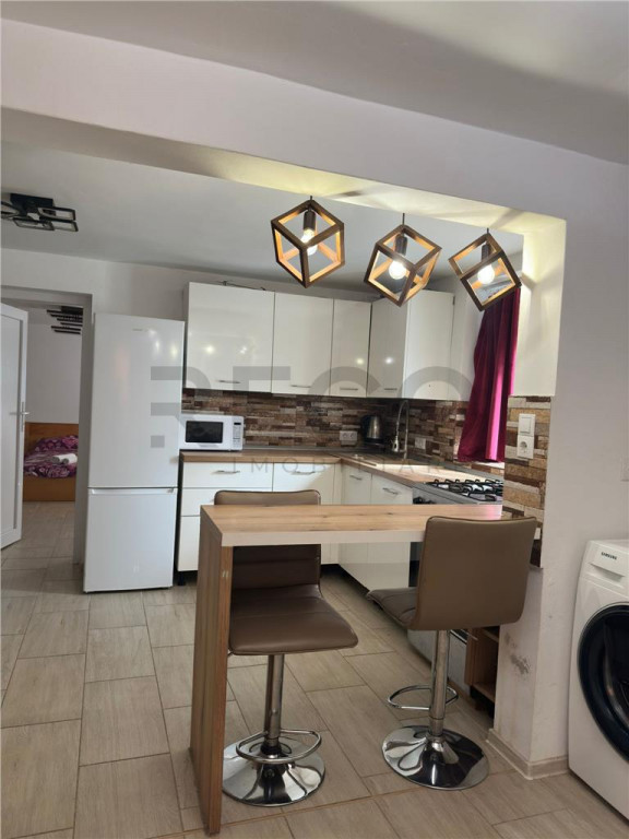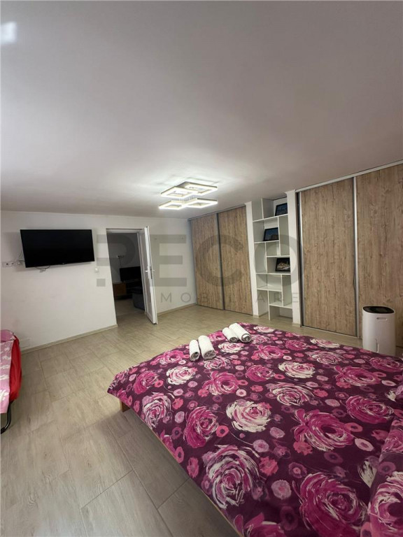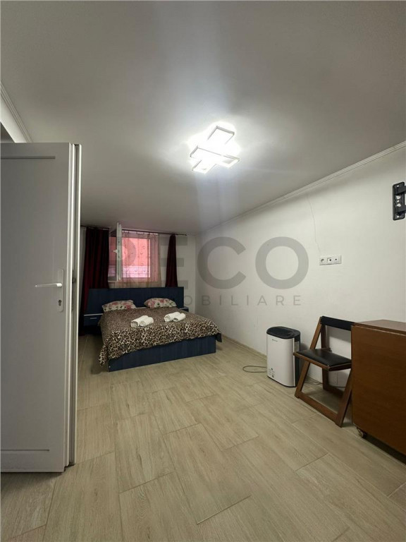 Apartament cu 2 camere situat in zona centrala. Situat la parter, apartamentul este open space. Compus din living cu bucatarie open space, dormitor, baie. Suprafata construita 80 mp, suprafata utila 59 mp. Orientat spre o zona linistita. Se vinde mobilat, fara TV-uri. Dispune de usa cu parola si toate utilitatile premium. Proprietatea are toate aprobarile necesare pentru regim hotelier. Ideal pentru investitie sau locuinta proprie, in centrul orasului, cu acces rapid la toate facilitatile. Zona este linistita, apartamentul este gata de locuit sau inchiriat imediat. Pret: 105.000 EUR