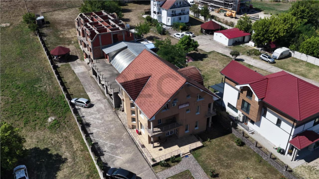 Pensiunea este functionala, profitabila (15000 Euro/luna), are un potential imens datorita zonei in care este pozitionata. Constructia in rosu din spate poate fi continuata conform proiectului initial dar si transformata intr un bloc de apartamente (18 apartamente cu 1 camera) de vacanta/regim hotelier.