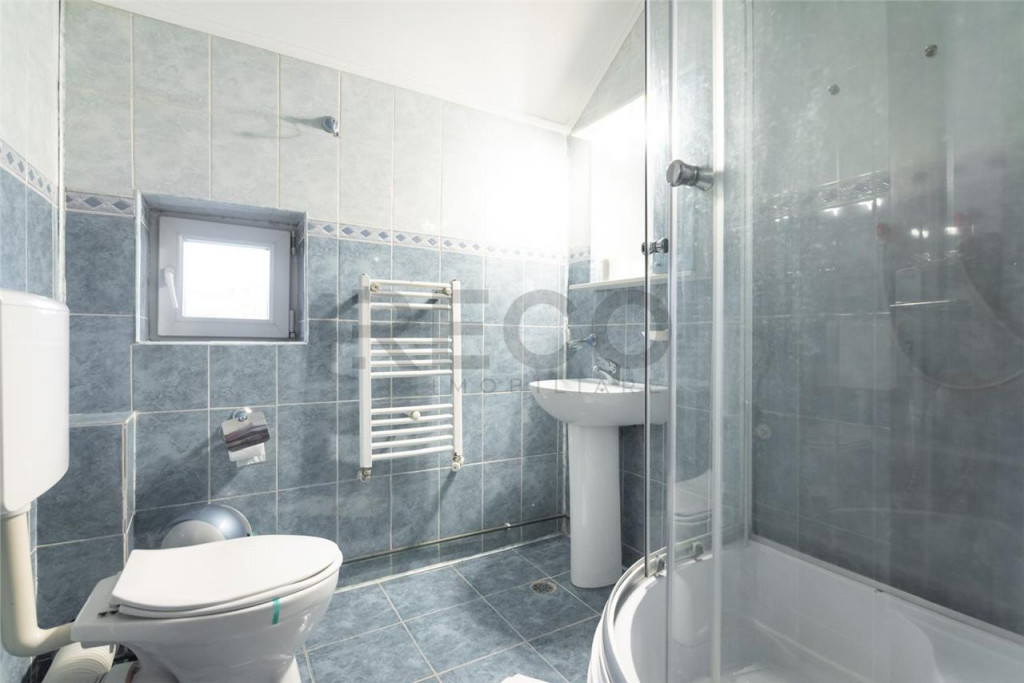 parterul este prevazut cu receptie, baie, 3 camere individuale cu baie proprie, un apartament