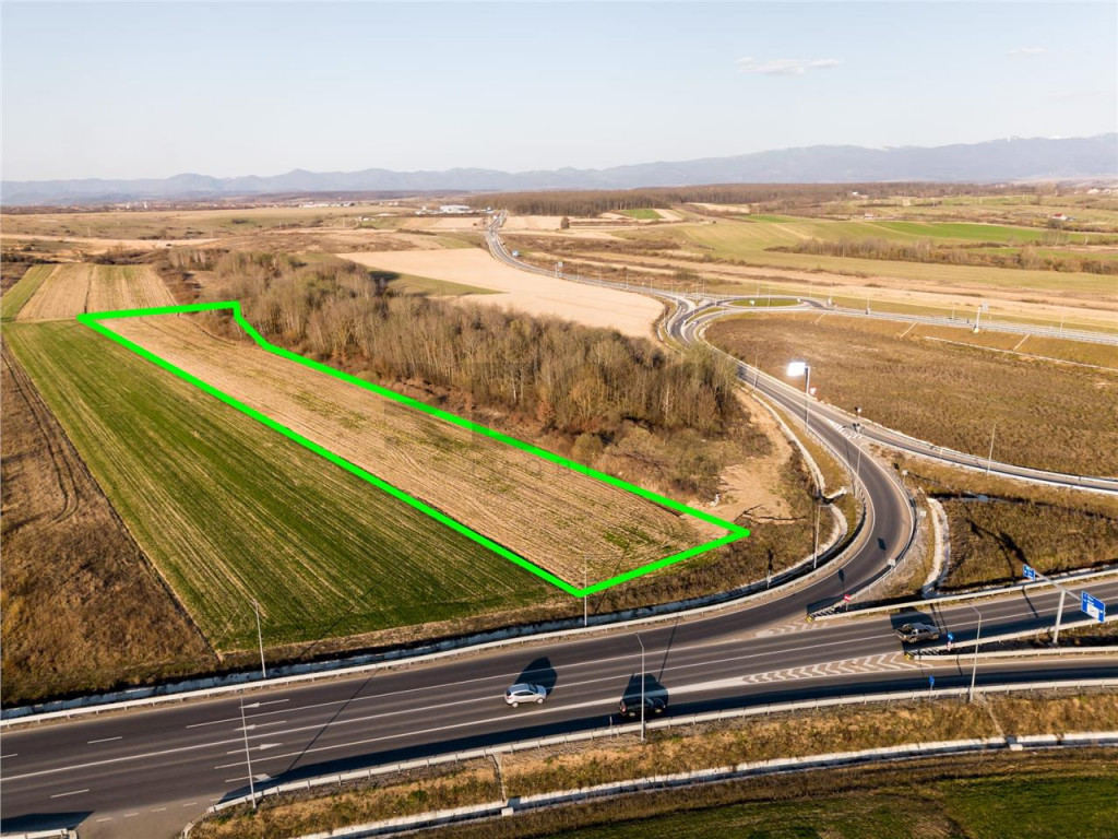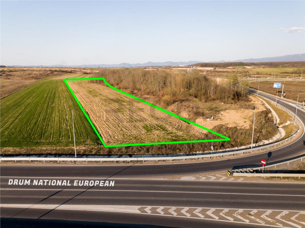 Terenul se afla intr-o locatie cu vizibilitate foarte buna si acces facil, are triplu front stradal si deschidere la drumul European, fiind ideal pentru investitie sau dezvoltare comerciala.
