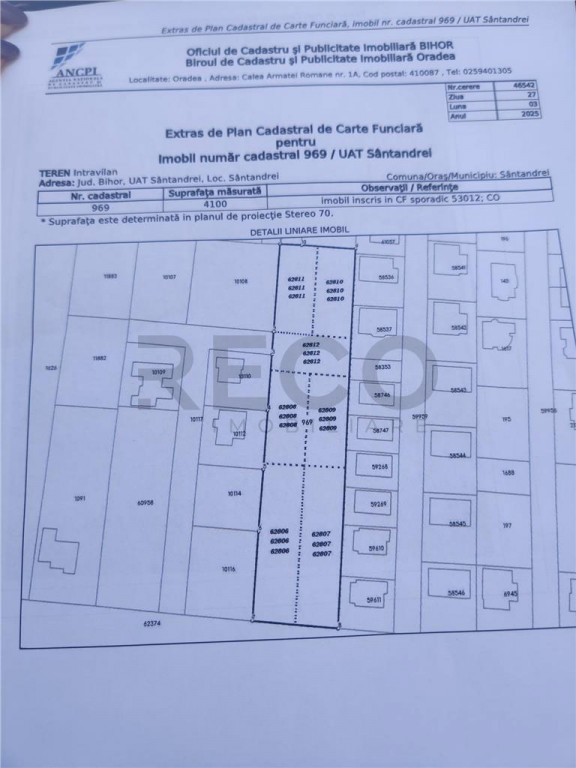 RECO . TEREN INTRAVILAN SANTANDREI .