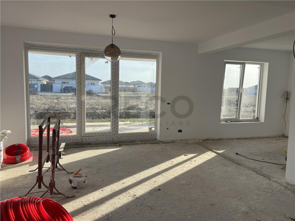 Imobilul se vinde in alb cu incalziarea in pardosela pe gaz cu centrala inclusa , apa , curent , canalizare , gard si toate instalatiile electrice incluse . Casa este foarte bine impartita si luminoasa , amplasata intr-o zona rezidentiala .