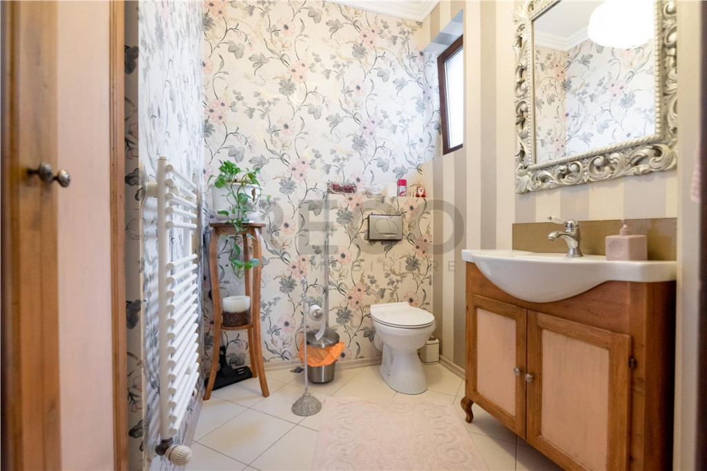 RECO Imobiliare va propune spre vanzare in EXCLUSIVITATE #ILS82 Vila impresionanta in Oradea, pe strada Apateului, intr-o zona rezidentiala foarte apreciata, in vecinatatea cartierului Nufarul. Situata pe o strada foarte linistita, extrem de bine pozitionata, strada care beneficiaza de toate utilitatie curent, apa, canalizare, gaz si asfalt, cu acces facil catre toate punctele de interes ale orasului. Casa este construita in 2010, este foarte spatioasa si se afla pe un teren de 500 mp. Este dispusa pe 3 nivele DS P M, compartimentata astfel: -demisol cu urmatoarele functiuni: garaj cu un loc, scara de acces, pivnita-spatiu de depozitare. -parter cu living, sufragerie, bucatarie, hol si scara, baie de serviciu -mansarda inalta cu 3 dormitoare, 2 bai, dressing si 3 balcone. Constructia este din caramida cu planseu de beton, izolata pe exterior cu polistiren de 10 cm , tencuiala decorativa aplicata, glafuri interioare/exterioare din granit, ferestre din lemn triplu stratificat cu geam termopan, tigla din beton si pod izolat, finisaje de calitate, gard de jur imprejur, poarta automata, garaj automat, sistem de supraveghere video, aer conditionat. Curtea este amenajata, beneficiaza de sistem de irigatie automat. Aceasta vila este locul in care te poti muta imediat, fara reparatii sau ajustari, un camin gandit sa ofere confort real pe termen lung. Se vinde partial mobilata. Suprafata teren 500 mp Suprafata utila 230 mp Toate utilitatile (curent, apa, canalizare, gaz) sunt pe propietate. PRET:479 000 Euro Pentru mai multe detalii si vizionari, va stam la dispozitie. TEL: 0376 443 700 ID intern: 4311.