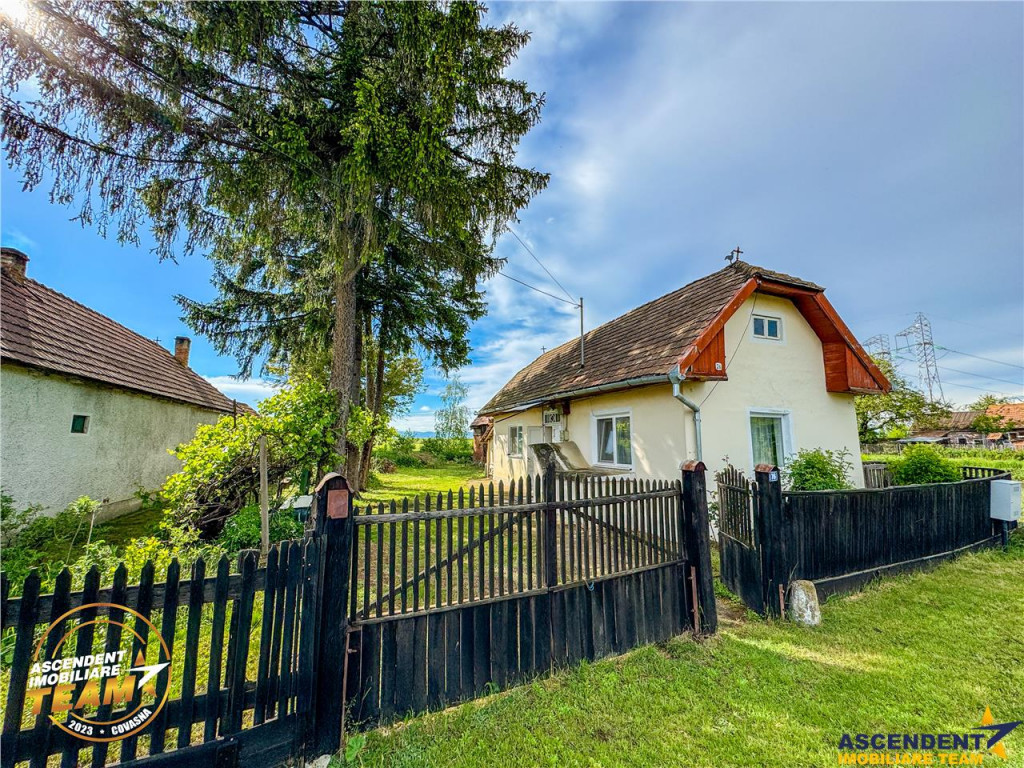 Comision cumparator: 0% ASCENDENT IMOBILIARE COVASNA este onorata sa va propuna spre vanzare o casa pitoreasca situata intr-o zona linistita, ideala pentru cei care isi doresc intimitate si un teren generos, ariata in Santionlunca, Covasna, la 10 min de Sfantu Gheorghe. Va invitam sa experimentati o vizionare initiala, din locatia unde va aflati, chiar acum, prin accesarea filmului de prezentare: https://www.youtube.com/watch?v=eFwMq9azp1I Suprafata construita este de 68 mp, iar terenul are o suprafata apreciabila de 1.439 mp. Proprietatea este compartimentata in 2 camere decomandate si a fost construita in anul 1956. Utilitatile, apa si gazul, se afla in fata proprietatii, iar aceasta dispune si de anexe. Se vinde nemobilata, oferind astfel oportunitatea de a o personaliza dupa viziunea noilor proprietari. Proprietatea ofera posibilitati de extindere sau modernizare, beneficiind de acces facil la utilitati. Este recomandata atat pentru o locuinta permanenta, cat si ca o resedinta de vacanta. Pentru mai multe detalii sau pentru o vizionare, va invitam sa ne contactati. Invit colegii la colaborare: garantam agentului/ agentiei partenere, comisionul aferent! Pentru cunoasterea in detaliu a proprietatii va asteptam la vizionare. Consilier dedicat alesei oferte: domnul Ionel Manailescu, Telefon/ WhatsApp: 0745051787