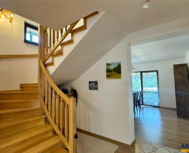 Interiorul surprinde prin atmosfera calda si echilibrata: living generos cu bar integrat si elemente naturale, dining elegant pentru 8 persoane, bucatarie complet utilata in stil traditional, 2 bai moderne si 4 dormitoare la etaj ndash; doua cu balcon si doua cu ferestre Velux.