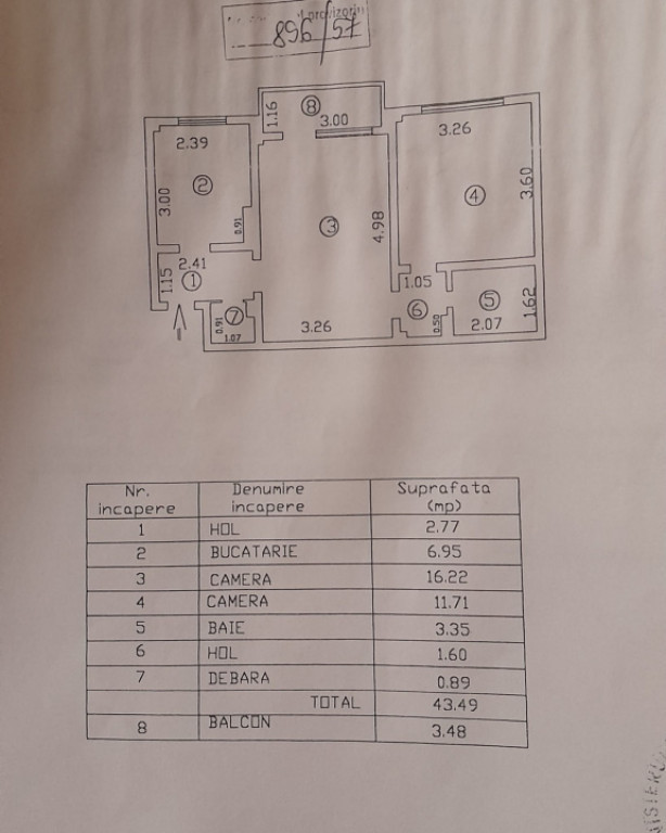 Suprafața utilă 43 m²