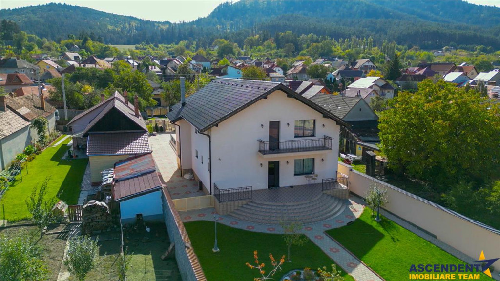 Comision cumparator 0% ASCENDENT IMOBILIARE Va prezinta in REPREZENTARE IMOBILIARA, o vila somptuoasa, pozitionata excelent in zona centrala, la o distanta de 15 minute de Brasov, in Municipiul Sacele. Va invitam sa experimentati o vizionare initiala, din locatia unde va aflati, chiar acum, prin accesarea filmului de prezentare: Film prezentare: https://www.youtube.com/watch?v=WL11ZGja9Sk Aceasta proprietate impresioneaza prin farmecul sau unic, intampinandu-va cu o deschidere larga, intrarea fiind orientata spre gradina din fata vilei, frumos decorata cu flori, ghivece si pitici de gradina. O nota impunatoare o aduce si mica fantana arteziana care completeaza peisajul. Remarcabil este designul atent al vilei, finisajele de calitate superioara si materialele folosite, confortul modern oferit de spatiile luminoase si generoase, precum si liniile elegante ce reflecta tuseul personal al proprietarilor. Vila, dispusa pe D P M, ofera o suprafata utila de 355 mp si urmatoarea configuratie: Demisol 2 garaje (42 mp in total), hol, spalatorie/calcatorie/camera de sport, camera tehnica, spatiu de depozitare tip crama (120 mp) Parter Living spatios de 35 mp, bucatarie inchisa cu zona de luat masa extrem de luminoasa, camara incapatoare, hol generos, baie, spatiu de depozitare (123 mp) Mansarda/Etaj 3 dormitoare, 3 bai, 2 dressinguri, hol si 2 terase deschise cu vedere mixta (112 mp) Un aspect de mentionat este inaltimea generoasa a mansardei, construita ca un etaj complet, cu inaltimi variabile de la 2,20 m la 3,97 m, oferind o senzatie de spatiu amplu si confortabil. Inaltimea spatiilor interioare este de: demisol 2,62 m, parter 2,92 m, iar mansarda intre 2,20 si 3,97 m. Accesul intre demisol si mansarda se face pe o scara ampla si eleganta, imbracata in detalii de fier forjat si iluminata de un candelabru din cristal. Amintim: Peretii exteriori ai demisolului sunt din beton armat de 30 cm si zidarie portanta de 30 cm, cu plansee din beton armat de 20 cm grosime, oferind o structura solida si durabila. In spatele casei gasiti o mica sera, iar mansarda dispune de doua terase mari cu vedere mixta, una spre fata si alta spre spatele casei, oferind oportunitati excelente de relaxare in aer liber. Rezidenta dispune de sistem de supraveghere video, doua garaje cu telecomanda, terasa acoperita la intrare, toate pe un teren generos de 985 mp. Infrastructura locala apreciabila, avand in proximitate punctele de interes local: statii de transport in comun, supermarketuri precum Carrefour si Mega Image, benzinarie, banci, scoli, gradinite si parcuri verzi, perfecte pentru plimbari de seara. Va astept sa descoperim impreuna povestea acestei minunate proprietati cu stil modern si cozy. Invitam colegii la colaborare! Consilieri specializati pe oferta: doamna Gilda Georgescu Telefon/ WhatsApp: 0722.807.623 si domnul Nicolaie Pavel Telefon/WhatsApp: 0720 500 650 Detalii, fotografii suplimentare si alte variante similare exclusive: www.ascendentimobiliare.ro