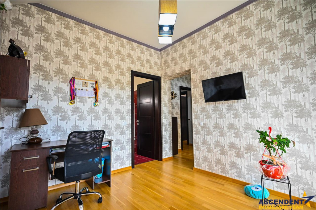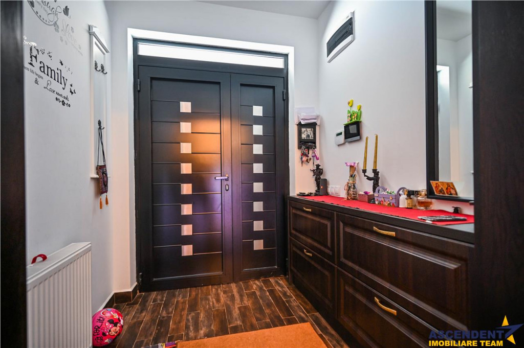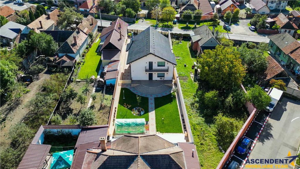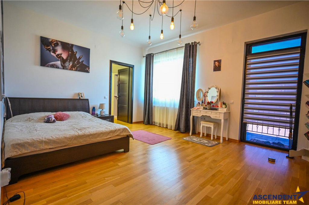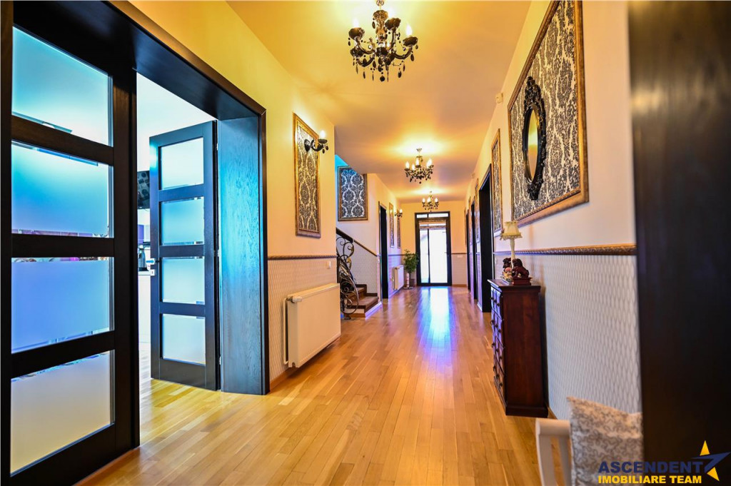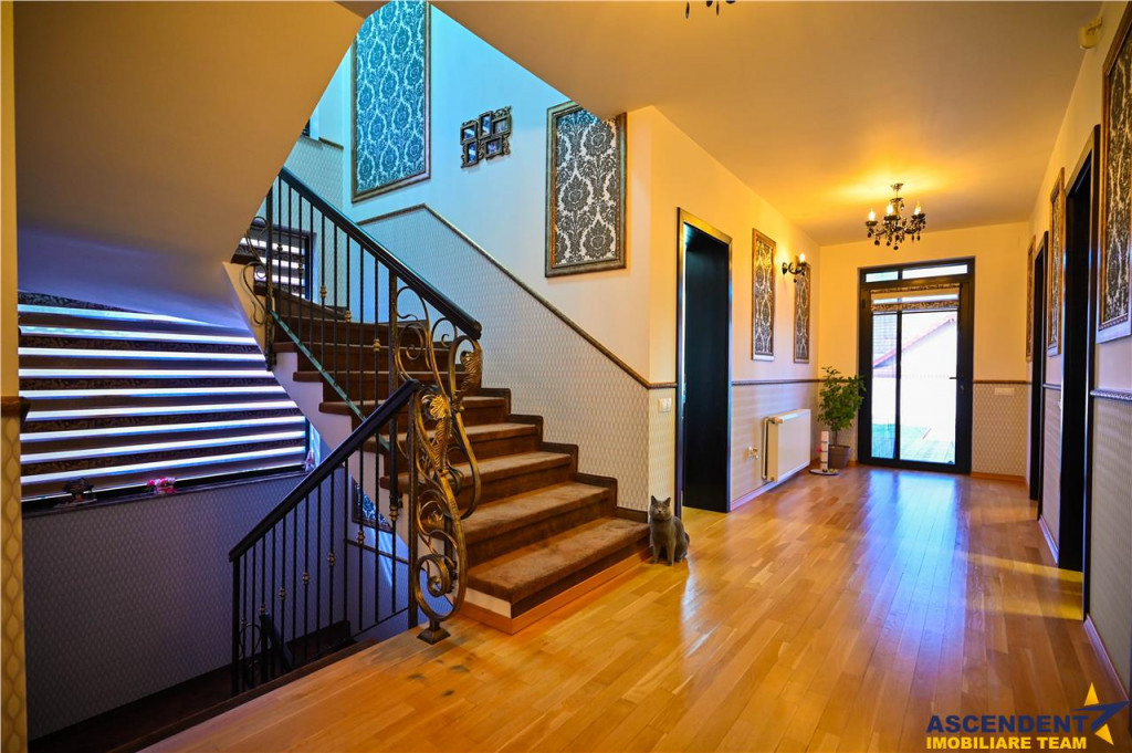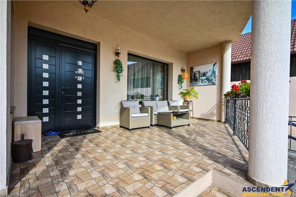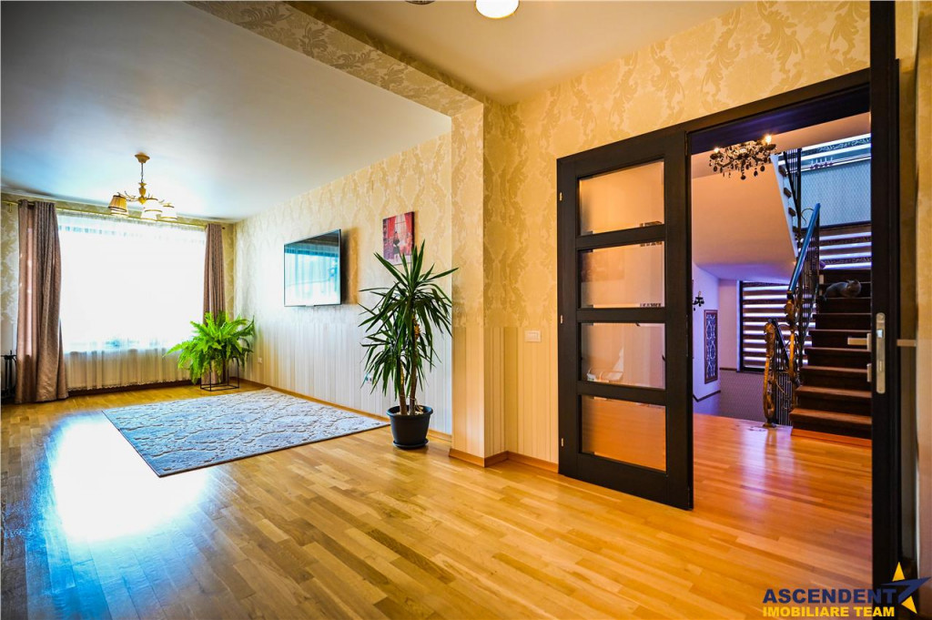 Comision cumparator 0% ASCENDENT IMOBILIARE Va prezinta in REPREZENTARE IMOBILIARA, o vila somptuoasa, pozitionata excelent in zona centrala, la o distanta de 15 minute de Brasov, in Municipiul Sacele. Va invitam sa experimentati o vizionare initiala, din locatia unde va aflati, chiar acum, prin accesarea filmului de prezentare: Film prezentare: https://www.youtube.com/watch?v=WL11ZGja9Sk Aceasta proprietate impresioneaza prin farmecul sau unic, intampinandu-va cu o deschidere larga, intrarea fiind orientata spre gradina din fata vilei, frumos decorata cu flori, ghivece si pitici de gradina. O nota impunatoare o aduce si mica fantana arteziana care completeaza peisajul. Remarcabil este designul atent al vilei, finisajele de calitate superioara si materialele folosite, confortul modern oferit de spatiile luminoase si generoase, precum si liniile elegante ce reflecta tuseul personal al proprietarilor. Vila, dispusa pe D P M, ofera o suprafata utila de 355 mp si urmatoarea configuratie: Demisol 2 garaje (42 mp in total), hol, spalatorie/calcatorie/camera de sport, camera tehnica, spatiu de depozitare tip crama (120 mp) Parter Living spatios de 35 mp, bucatarie inchisa cu zona de luat masa extrem de luminoasa, camara incapatoare, hol generos, baie, spatiu de depozitare (123 mp) Mansarda/Etaj 3 dormitoare, 3 bai, 2 dressinguri, hol si 2 terase deschise cu vedere mixta (112 mp) Un aspect de mentionat este inaltimea generoasa a mansardei, construita ca un etaj complet, cu inaltimi variabile de la 2,20 m la 3,97 m, oferind o senzatie de spatiu amplu si confortabil. Inaltimea spatiilor interioare este de: demisol 2,62 m, parter 2,92 m, iar mansarda intre 2,20 si 3,97 m. Accesul intre demisol si mansarda se face pe o scara ampla si eleganta, imbracata in detalii de fier forjat si iluminata de un candelabru din cristal. Amintim: Peretii exteriori ai demisolului sunt din beton armat de 30 cm si zidarie portanta de 30 cm, cu plansee din beton armat de 20 cm grosime, oferind o structura solida si durabila. In spatele casei gasiti o mica sera, iar mansarda dispune de doua terase mari cu vedere mixta, una spre fata si alta spre spatele casei, oferind oportunitati excelente de relaxare in aer liber. Rezidenta dispune de sistem de supraveghere video, doua garaje cu telecomanda, terasa acoperita la intrare, toate pe un teren generos de 985 mp. Infrastructura locala apreciabila, avand in proximitate punctele de interes local: statii de transport in comun, supermarketuri precum Carrefour si Mega Image, benzinarie, banci, scoli, gradinite si parcuri verzi, perfecte pentru plimbari de seara. Va astept sa descoperim impreuna povestea acestei minunate proprietati cu stil modern si cozy. Invitam colegii la colaborare! Consilieri specializati pe oferta: doamna Gilda Georgescu Telefon/ WhatsApp: 0722.807.623 si domnul Nicolaie Pavel Telefon/WhatsApp: 0720 500 650 Detalii, fotografii suplimentare si alte variante similare exclusive: www.ascendentimobiliare.ro