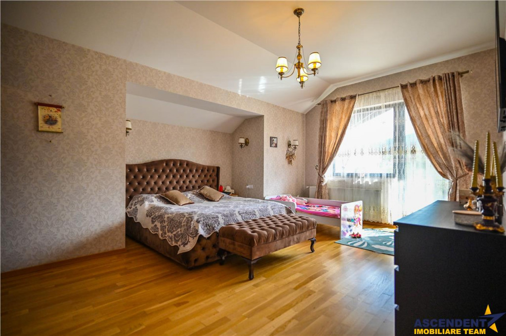 Comision cumparator 0% ASCENDENT IMOBILIARE Va prezinta in REPREZENTARE IMOBILIARA, o vila somptuoasa, pozitionata excelent in zona centrala, la o distanta de 15 minute de Brasov, in Municipiul Sacele. Va invitam sa experimentati o vizionare initiala, din locatia unde va aflati, chiar acum, prin accesarea filmului de prezentare: Film prezentare: https://www.youtube.com/watch?v=WL11ZGja9Sk Aceasta proprietate impresioneaza prin farmecul sau unic, intampinandu-va cu o deschidere larga, intrarea fiind orientata spre gradina din fata vilei, frumos decorata cu flori, ghivece si pitici de gradina. O nota impunatoare o aduce si mica fantana arteziana care completeaza peisajul. Remarcabil este designul atent al vilei, finisajele de calitate superioara si materialele folosite, confortul modern oferit de spatiile luminoase si generoase, precum si liniile elegante ce reflecta tuseul personal al proprietarilor. Vila, dispusa pe D P M, ofera o suprafata utila de 355 mp si urmatoarea configuratie: Demisol 2 garaje (42 mp in total), hol, spalatorie/calcatorie/camera de sport, camera tehnica, spatiu de depozitare tip crama (120 mp) Parter Living spatios de 35 mp, bucatarie inchisa cu zona de luat masa extrem de luminoasa, camara incapatoare, hol generos, baie, spatiu de depozitare (123 mp) Mansarda/Etaj 3 dormitoare, 3 bai, 2 dressinguri, hol si 2 terase deschise cu vedere mixta (112 mp) Un aspect de mentionat este inaltimea generoasa a mansardei, construita ca un etaj complet, cu inaltimi variabile de la 2,20 m la 3,97 m, oferind o senzatie de spatiu amplu si confortabil. Inaltimea spatiilor interioare este de: demisol 2,62 m, parter 2,92 m, iar mansarda intre 2,20 si 3,97 m. Accesul intre demisol si mansarda se face pe o scara ampla si eleganta, imbracata in detalii de fier forjat si iluminata de un candelabru din cristal. Amintim: Peretii exteriori ai demisolului sunt din beton armat de 30 cm si zidarie portanta de 30 cm, cu plansee din beton armat de 20 cm grosime, oferind o structura solida si durabila. In spatele casei gasiti o mica sera, iar mansarda dispune de doua terase mari cu vedere mixta, una spre fata si alta spre spatele casei, oferind oportunitati excelente de relaxare in aer liber. Rezidenta dispune de sistem de supraveghere video, doua garaje cu telecomanda, terasa acoperita la intrare, toate pe un teren generos de 985 mp. Infrastructura locala apreciabila, avand in proximitate punctele de interes local: statii de transport in comun, supermarketuri precum Carrefour si Mega Image, benzinarie, banci, scoli, gradinite si parcuri verzi, perfecte pentru plimbari de seara. Va astept sa descoperim impreuna povestea acestei minunate proprietati cu stil modern si cozy. Invitam colegii la colaborare! Consilieri specializati pe oferta: doamna Gilda Georgescu Telefon/ WhatsApp: 0722.807.623 si domnul Nicolaie Pavel Telefon/WhatsApp: 0720 500 650 Detalii, fotografii suplimentare si alte variante similare exclusive: www.ascendentimobiliare.ro