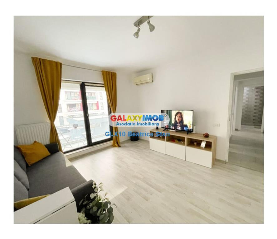 Inchiriere apartament elegant amplasat la etajul 9 intr-unul dintre imobilele noi ce fac parte din complexul Plaza Residence Lujerului, complet mobilat si echipat modern, camere decomandate, avand un balcon generos cu sticla. Bucataria este dotata cu masina de spalat, combina frigorifica, cuptor si plita electrica. In living este canapea extensibila, smart tv led 4k. Accesul in apartament este cu smart lock - yala inteligenta, este montat aer conditionat, termostat smart, dressinguri mari, alte spatii de depozitare, router wireless, iluminat economic tip led, robot de curatenie, baie cu dus walk-in comod. Este deservit de centrala termica proprie cu termostat wi fi. Complexul este monitorizat si are acces securizat.