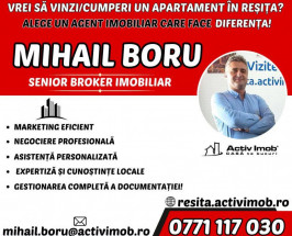 Daca si dumneavoastra aveti o proprietate in Resita sau in Judetul Caras-Severin si doriti sa o vindeti sau sa o inchiriati, va rugam sa sunati la numerele de telefon 0771 117 030 - Mihail Boru sau 0784 726 875 - Petre Culcea si vom crea un profil personalizat pentru vanzarea sau inchirierea acesteia, vizibil pe site-ul de imobiliare al orasului: resita.activimob.ro